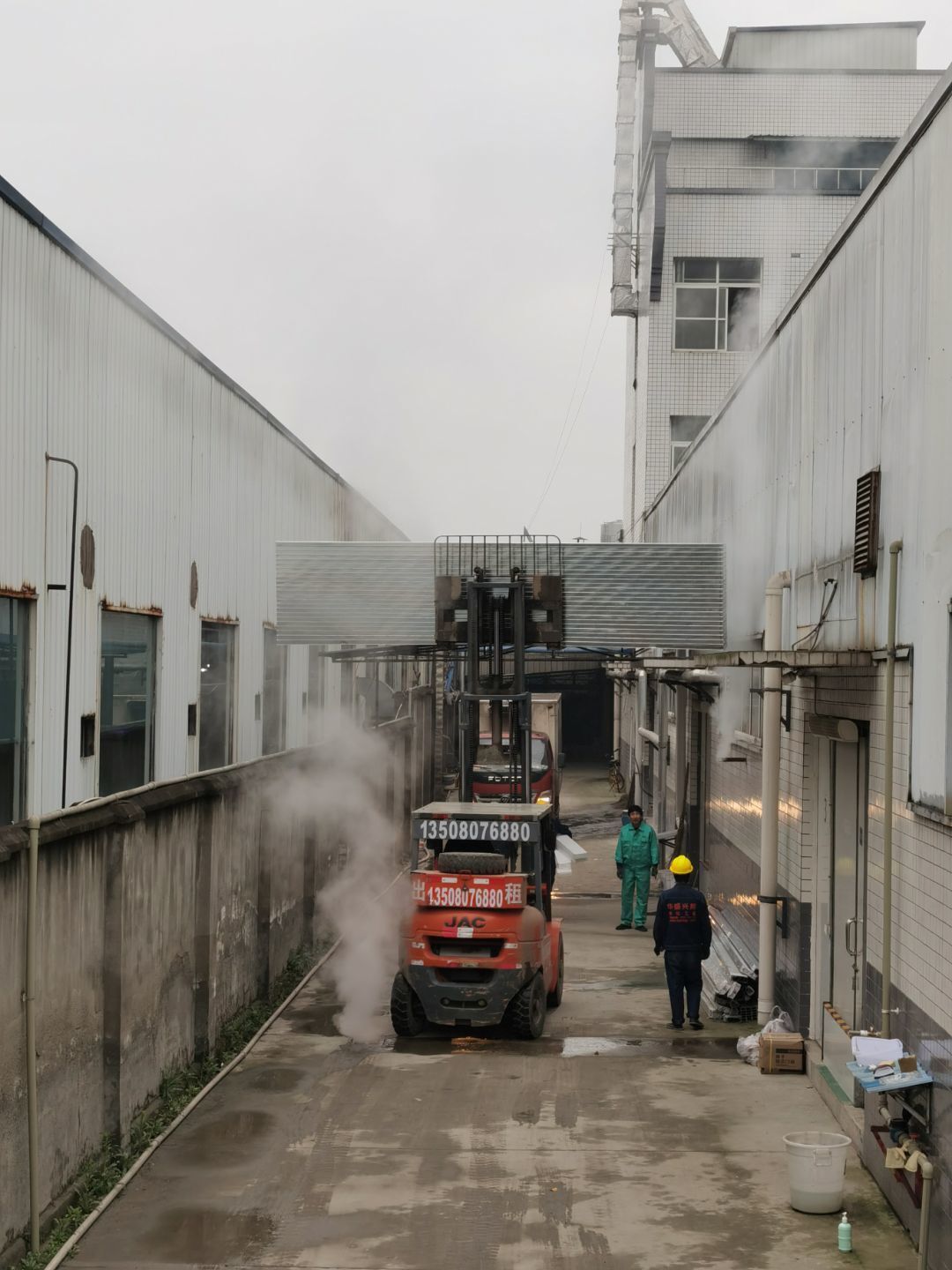 1、鋼接構完成40%:2、凍庫完成70%;3、彩鋼板入場兩車