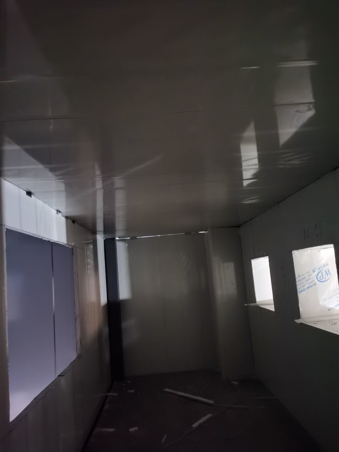 1、鋼接構完成70%;2、凍庫完成100%;3、彩鋼板開始立墻板