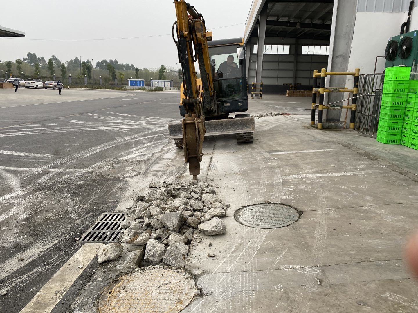 1.排水管道開挖破碎80米。 2.吊頂鋼繩安裝完成百分之40.