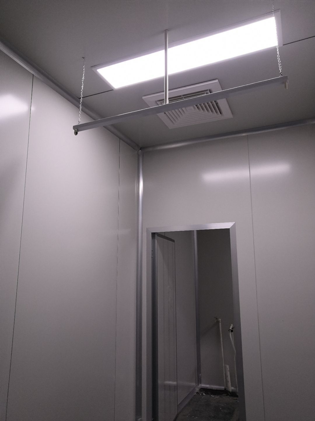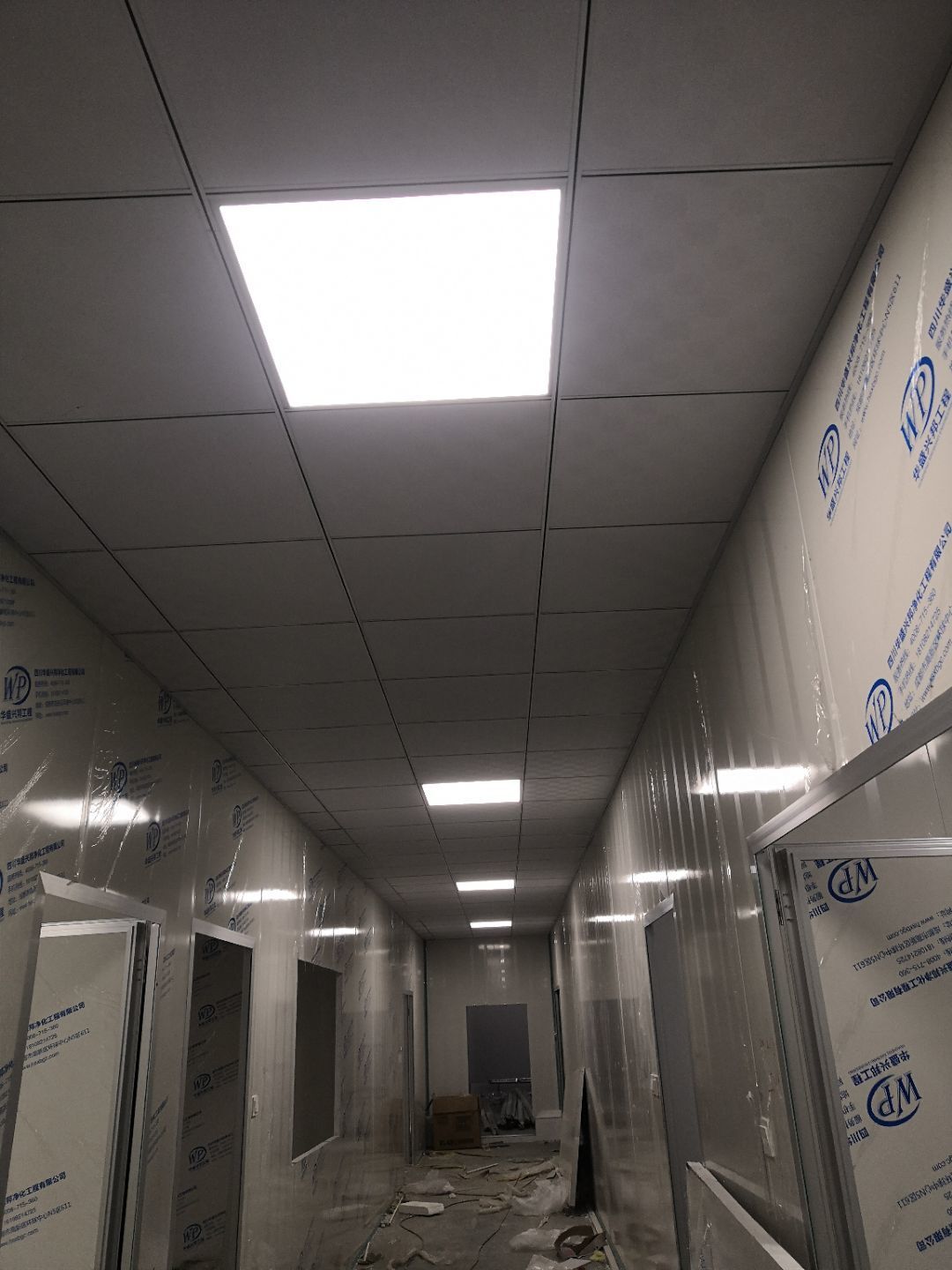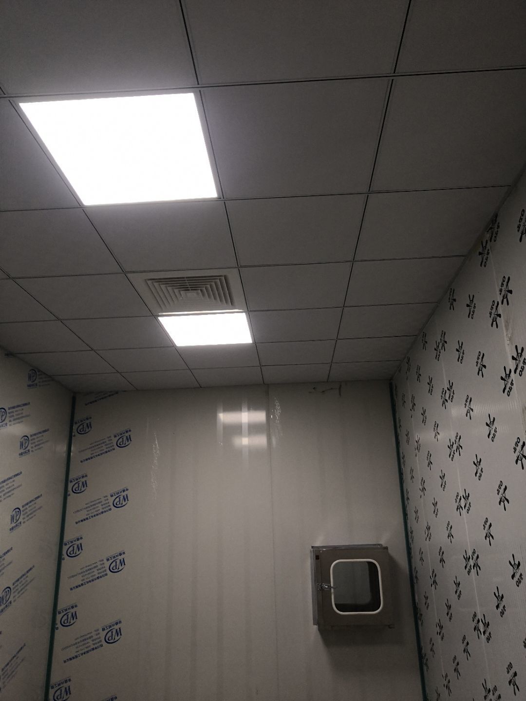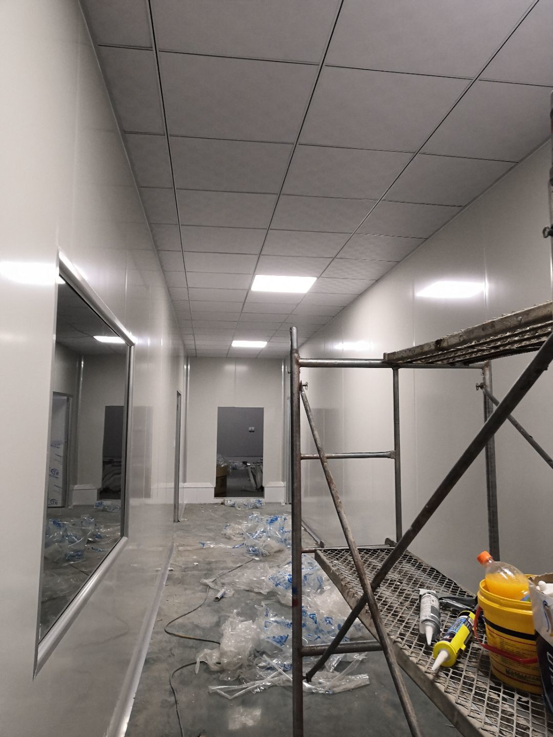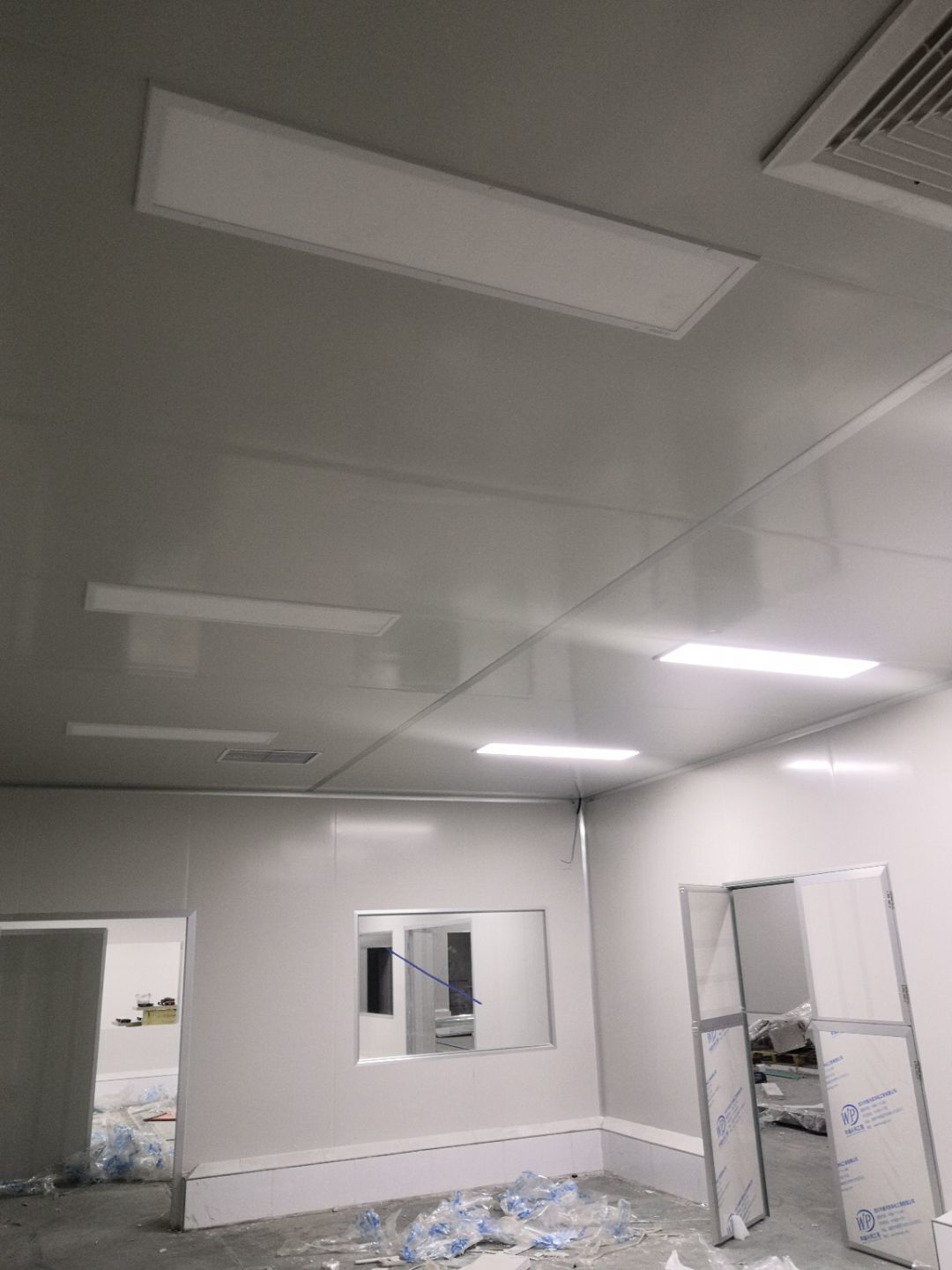 1.打膠,拍圓弧,做風(fēng)淋室,裝觀察窗 2.吊三防板 3.三防板裝燈,開關(guān),插座