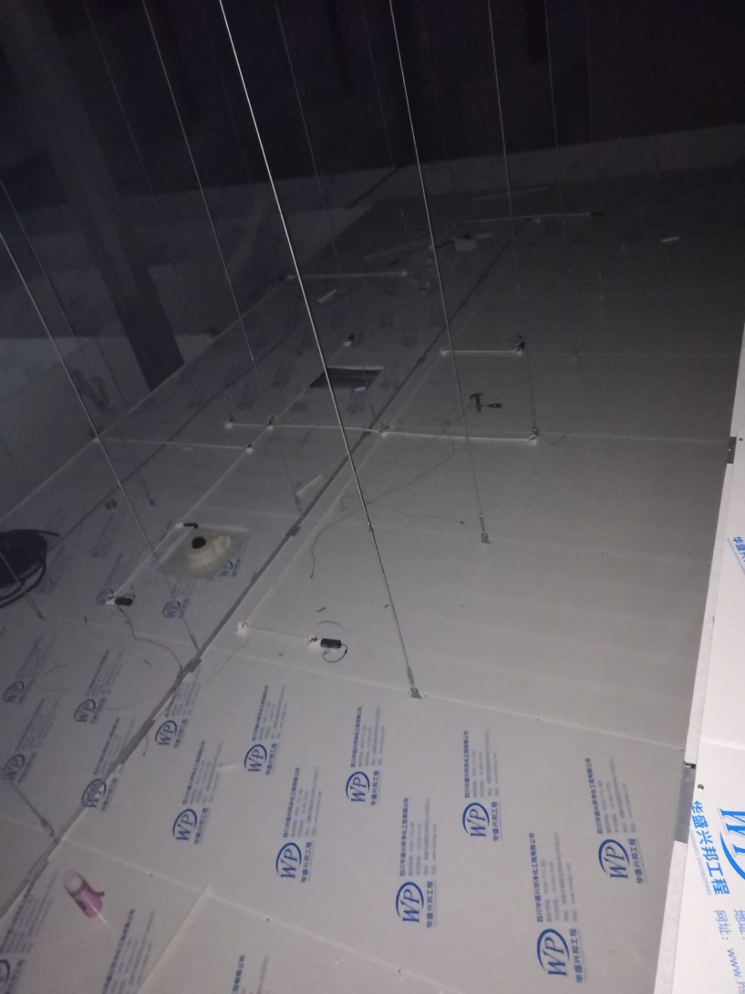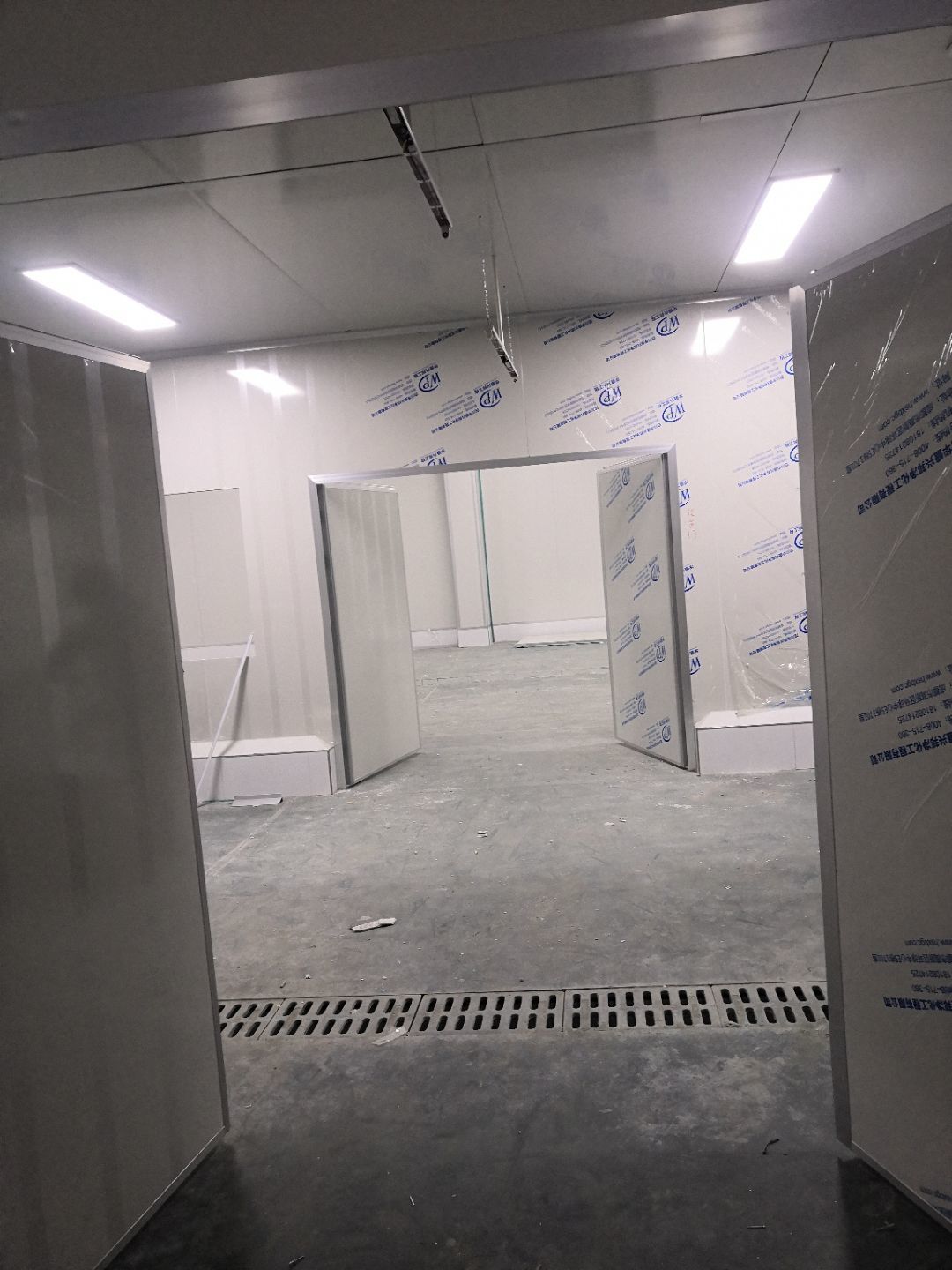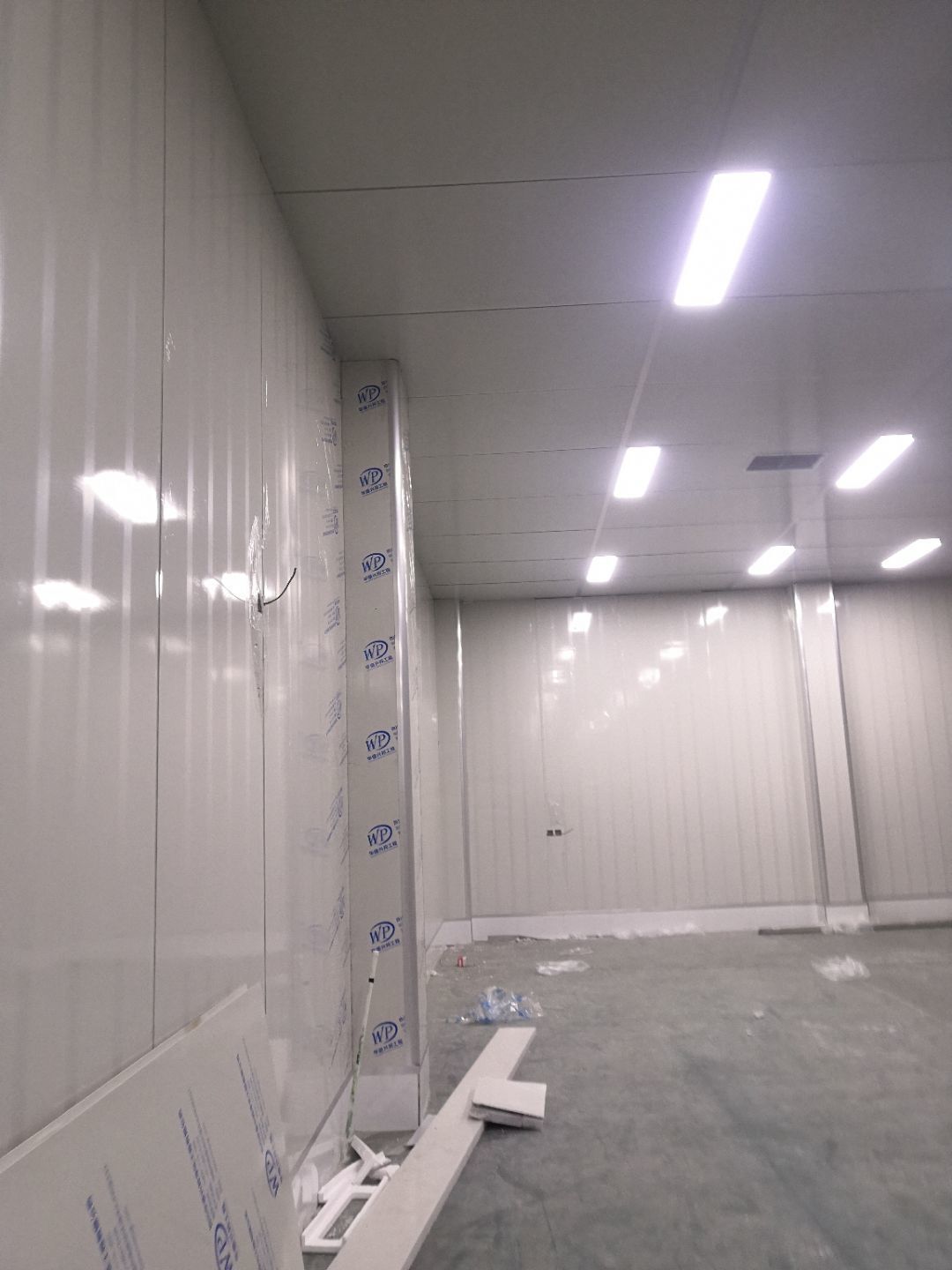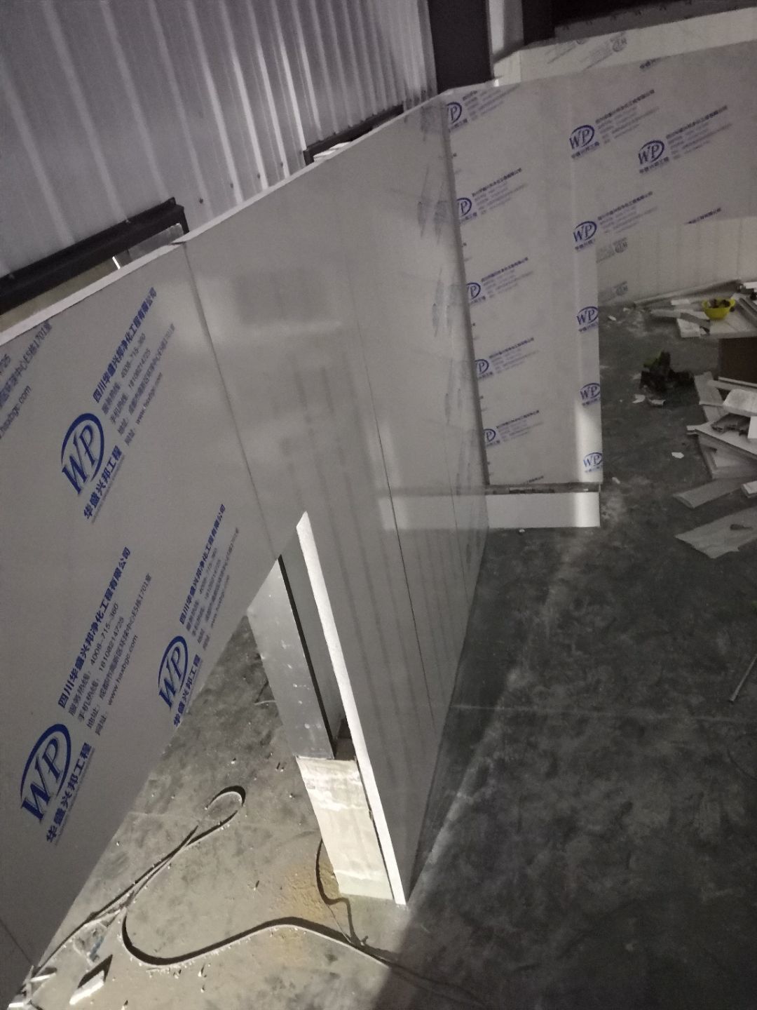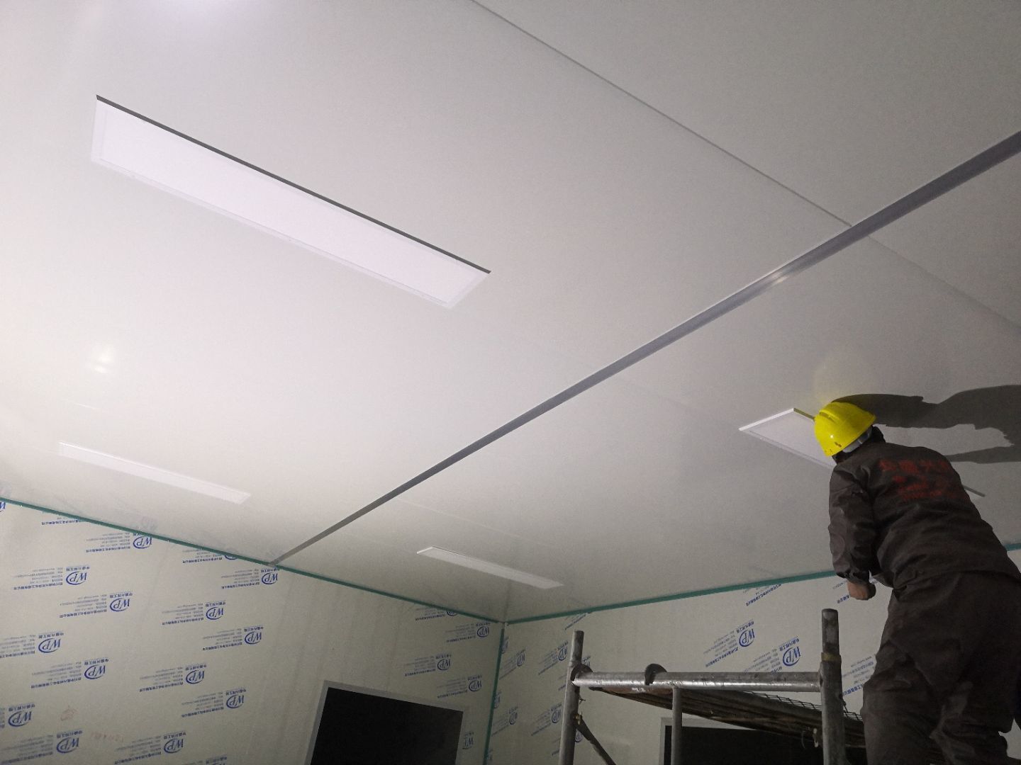 1.打膠,拍圓弧,做風(fēng)淋室,裝觀察窗 2.吊三防板 3.三防板裝燈,開關(guān),插座
