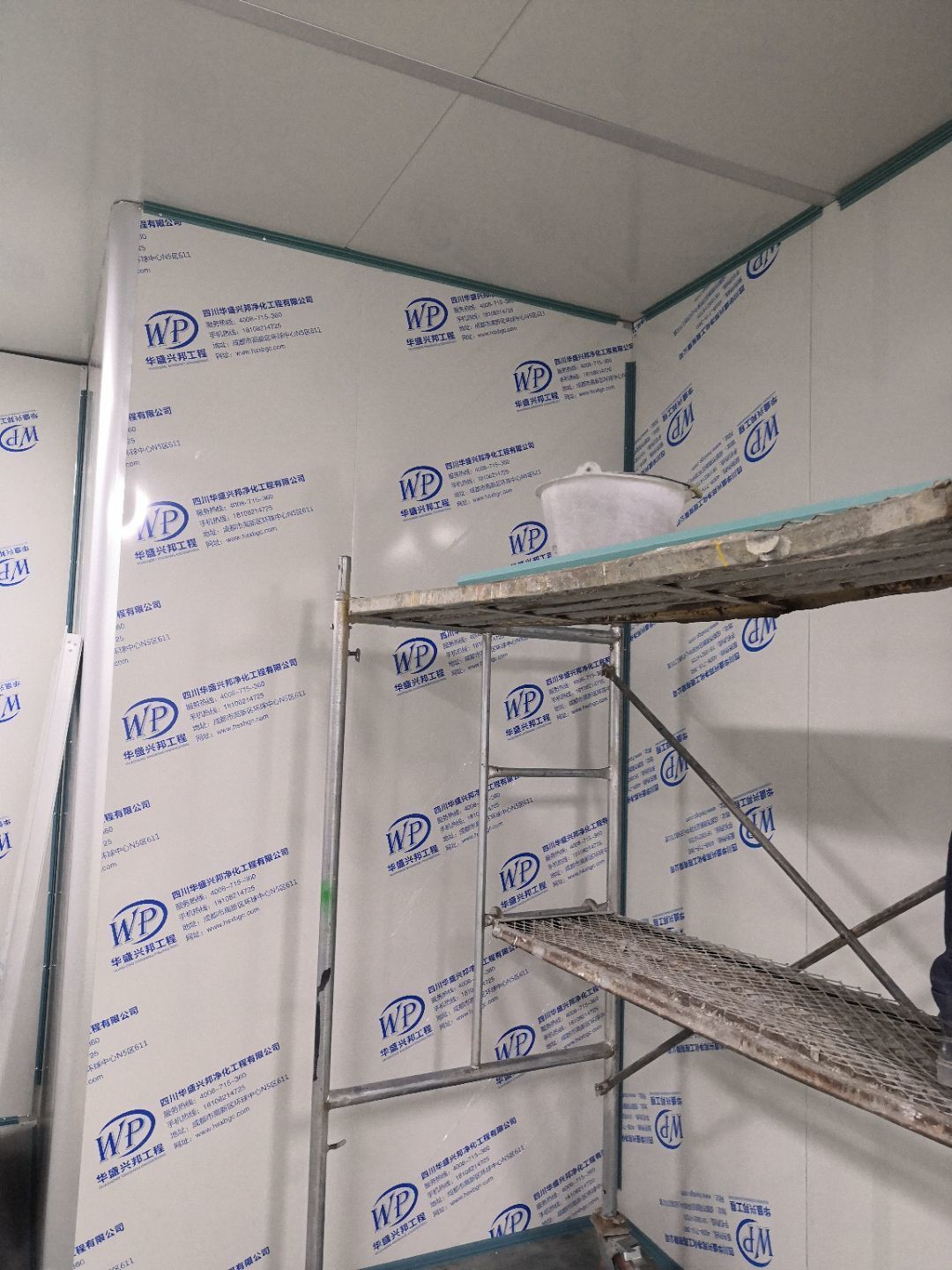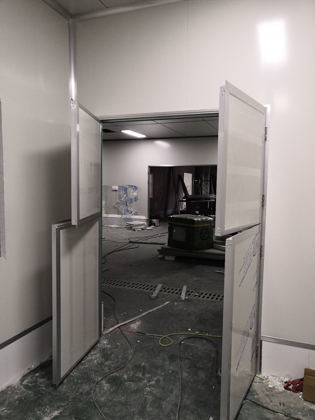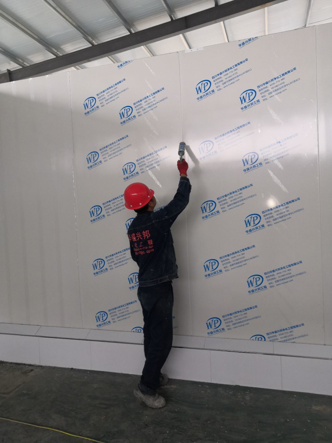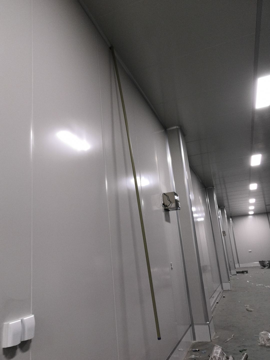 1.打膠,拍圓弧,做風(fēng)淋室,裝觀察窗 2.吊三防板 3.三防板裝燈,開關(guān),插座