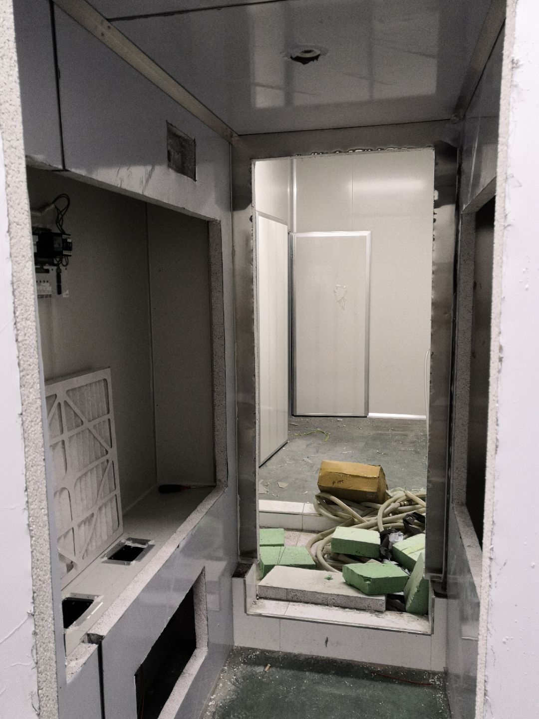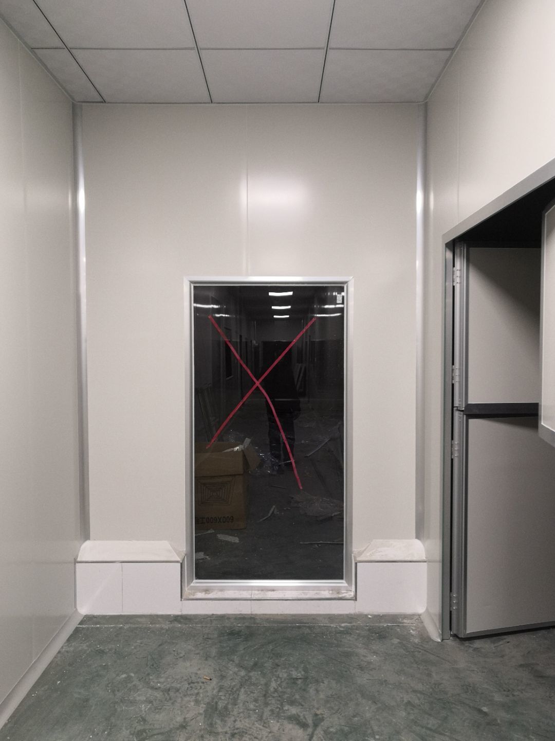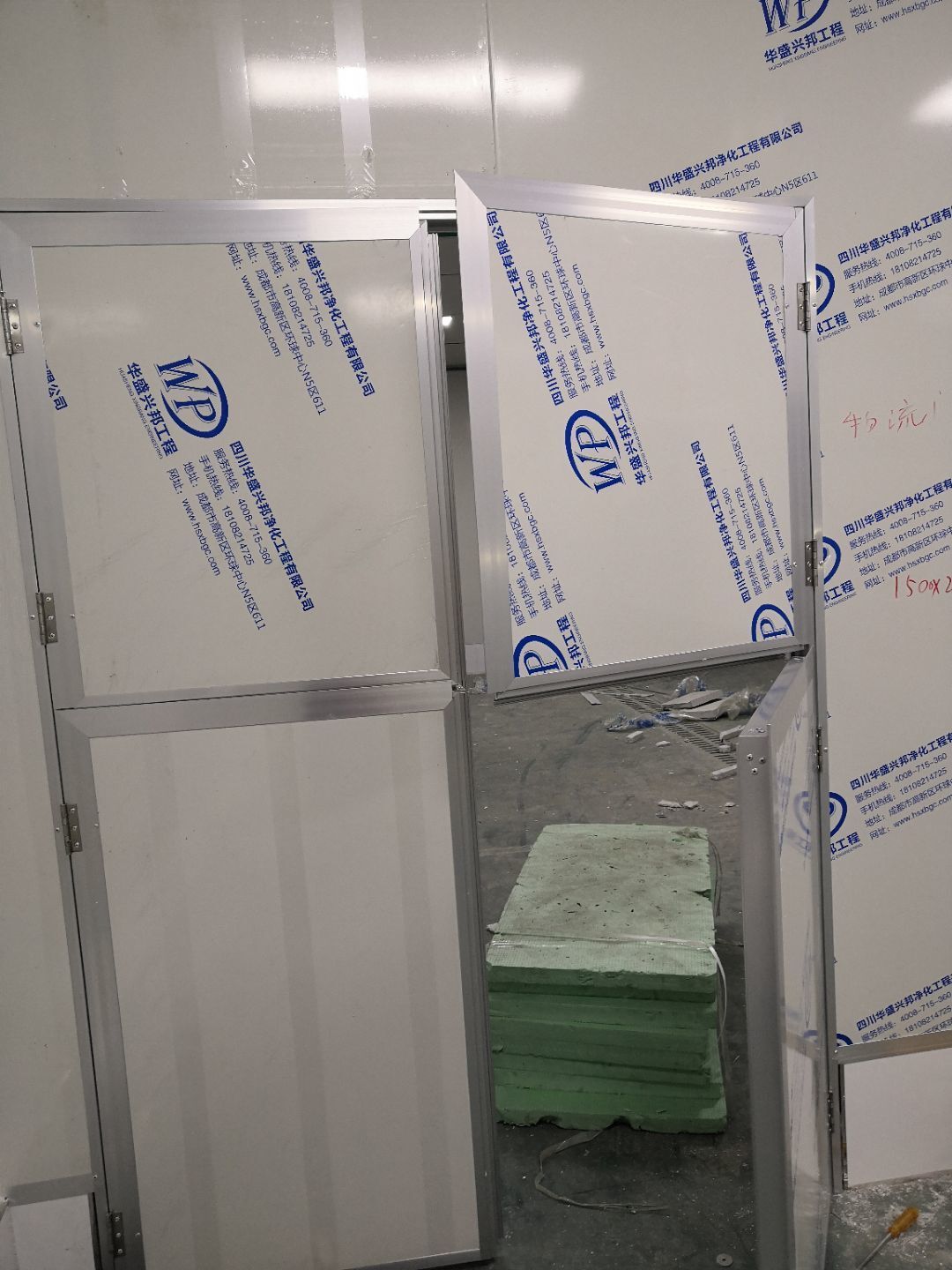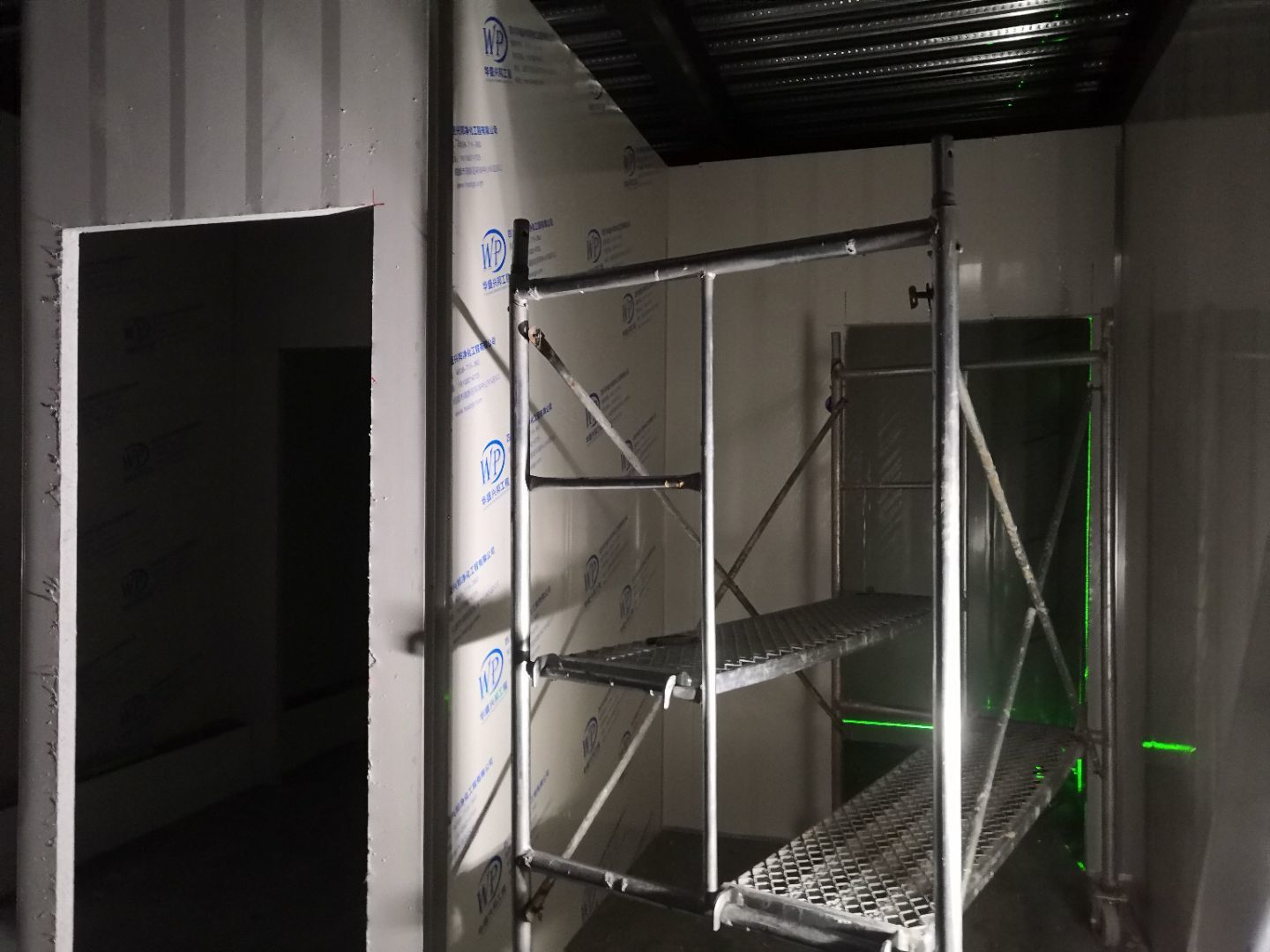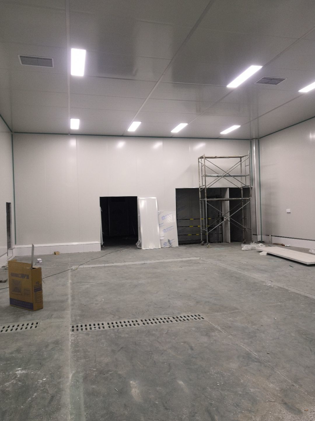 1.打膠,拍圓弧,做風(fēng)淋室,裝觀察窗 2.吊三防板 3.三防板裝燈,開關(guān),插座