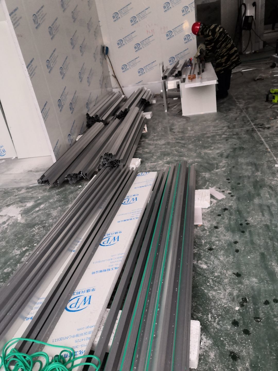1.掛吊筋T鋁施工,墻體打膠條,做門裝門 2.收拾邊角