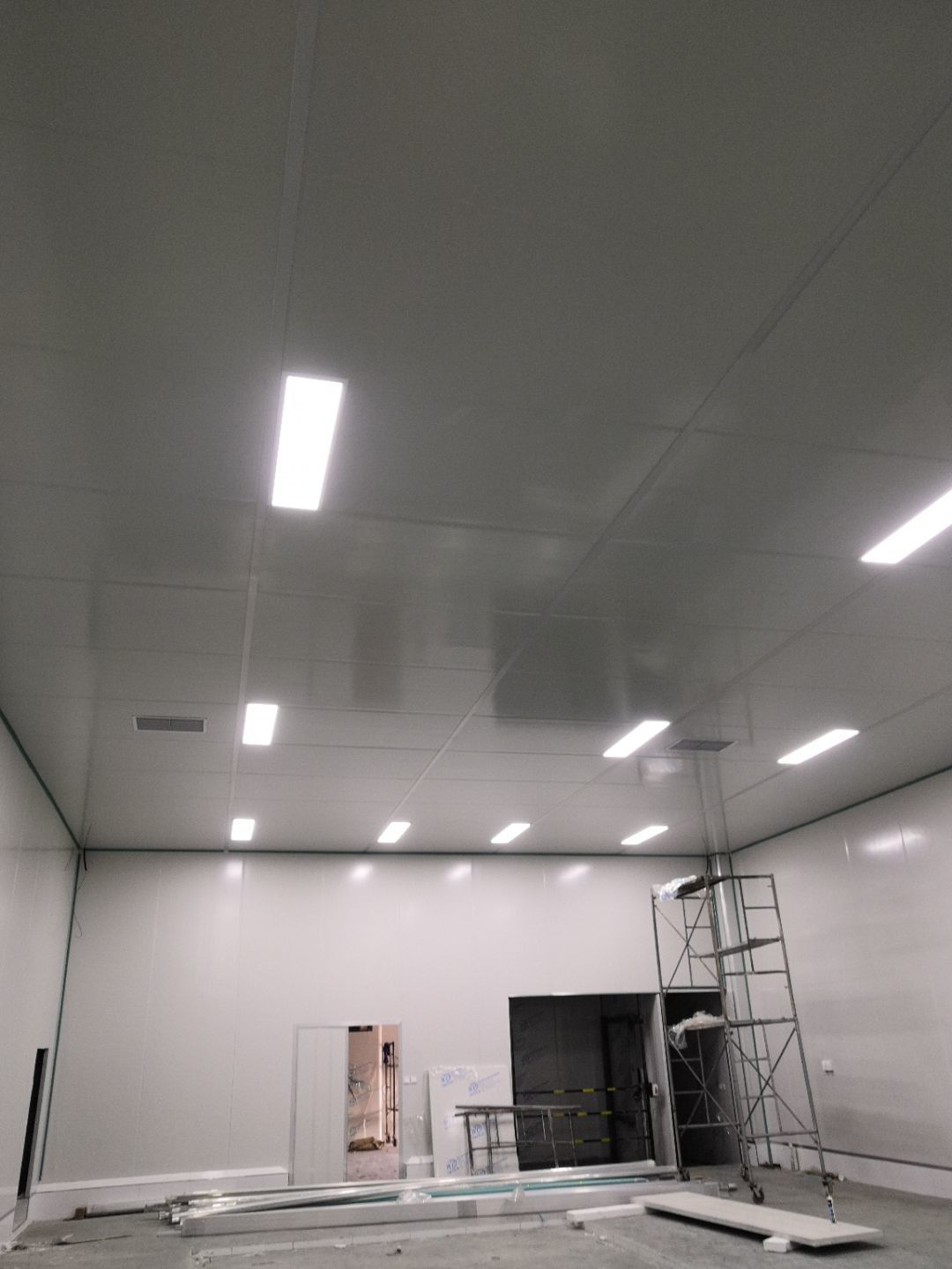 1.裝門,打膠,拍圓弧,做風(fēng)淋室 2.三防板吊頂
