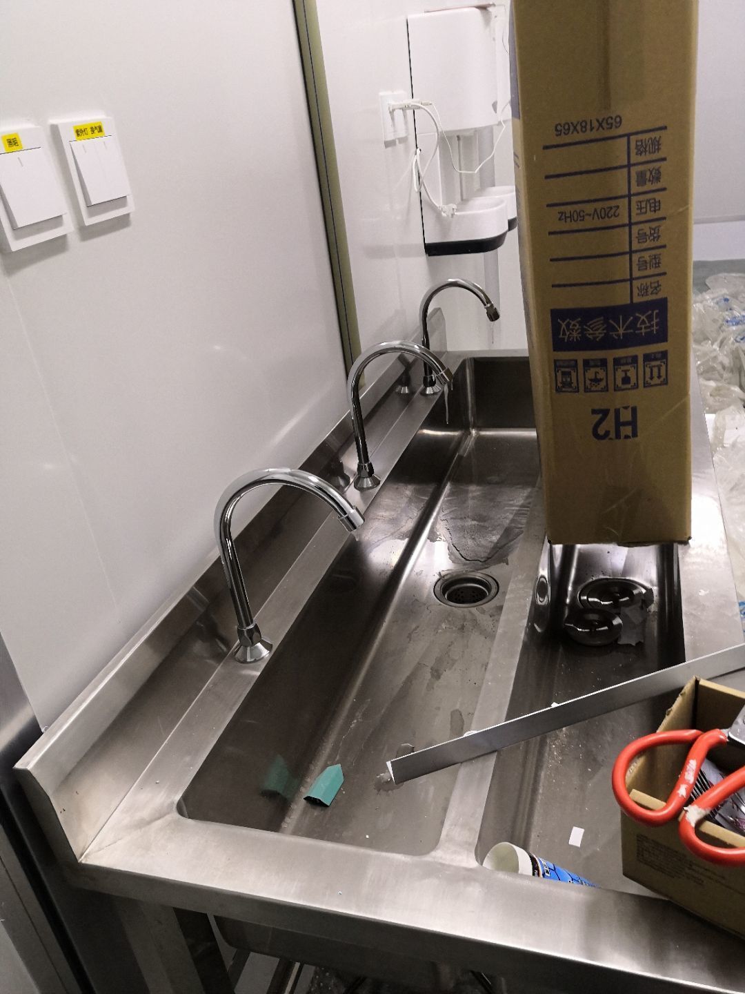 1.打膠收邊,裝鎖,閉門器,做擋鼠板 2,接水管,裝洗手盆,烘手器