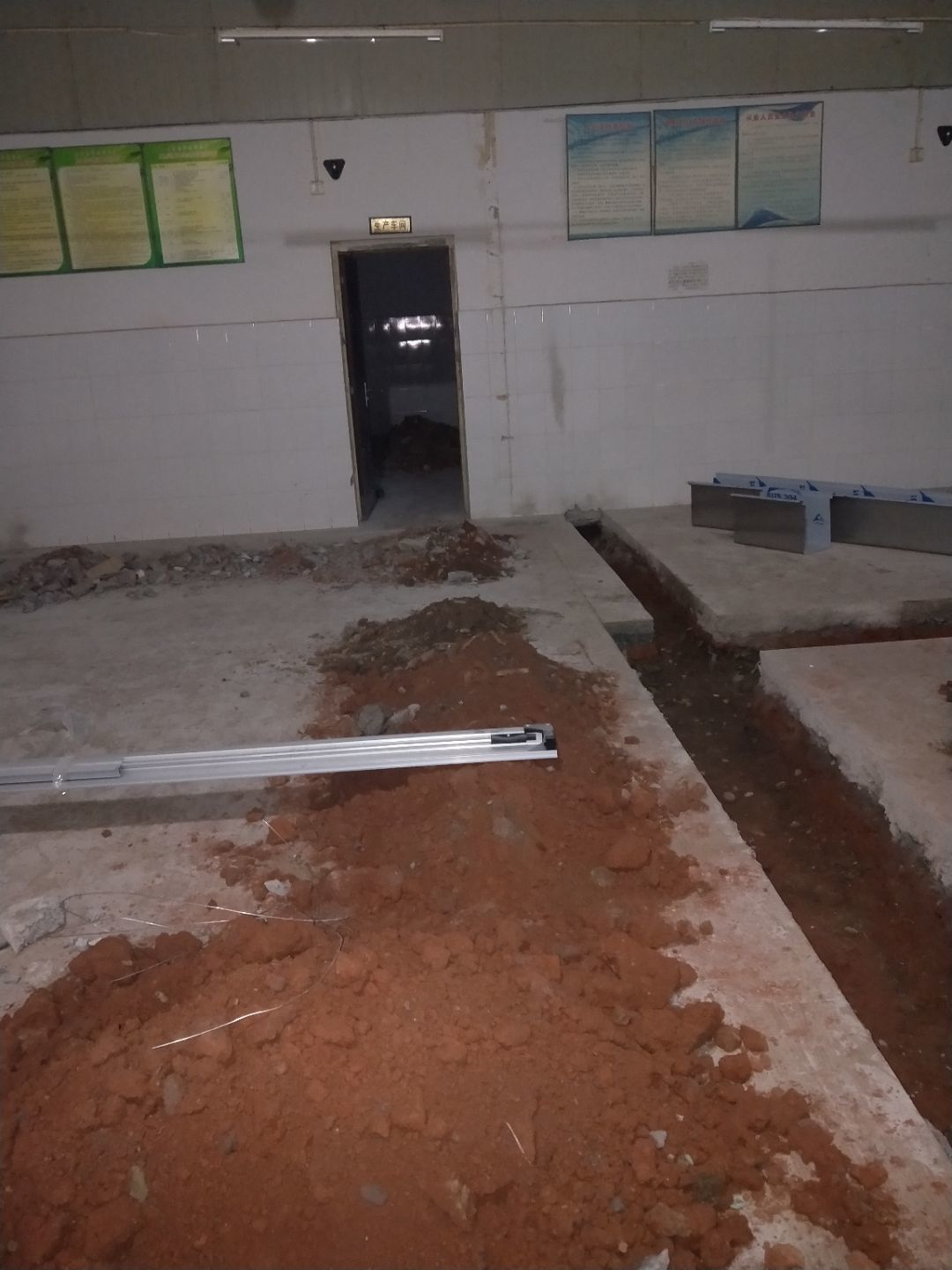 挖排水溝排水點完成,土建墻開門洞完成20%