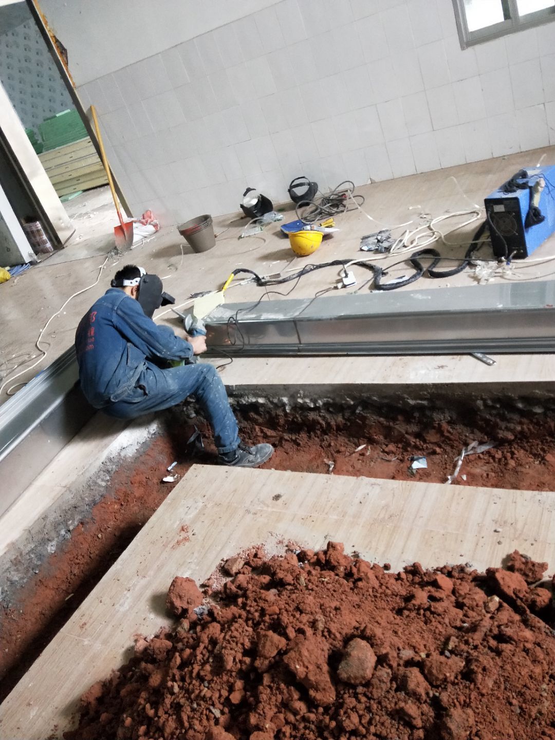 排水溝焊接完成90%,開門洞完成100%,修補門邊完成5%,建渣清理