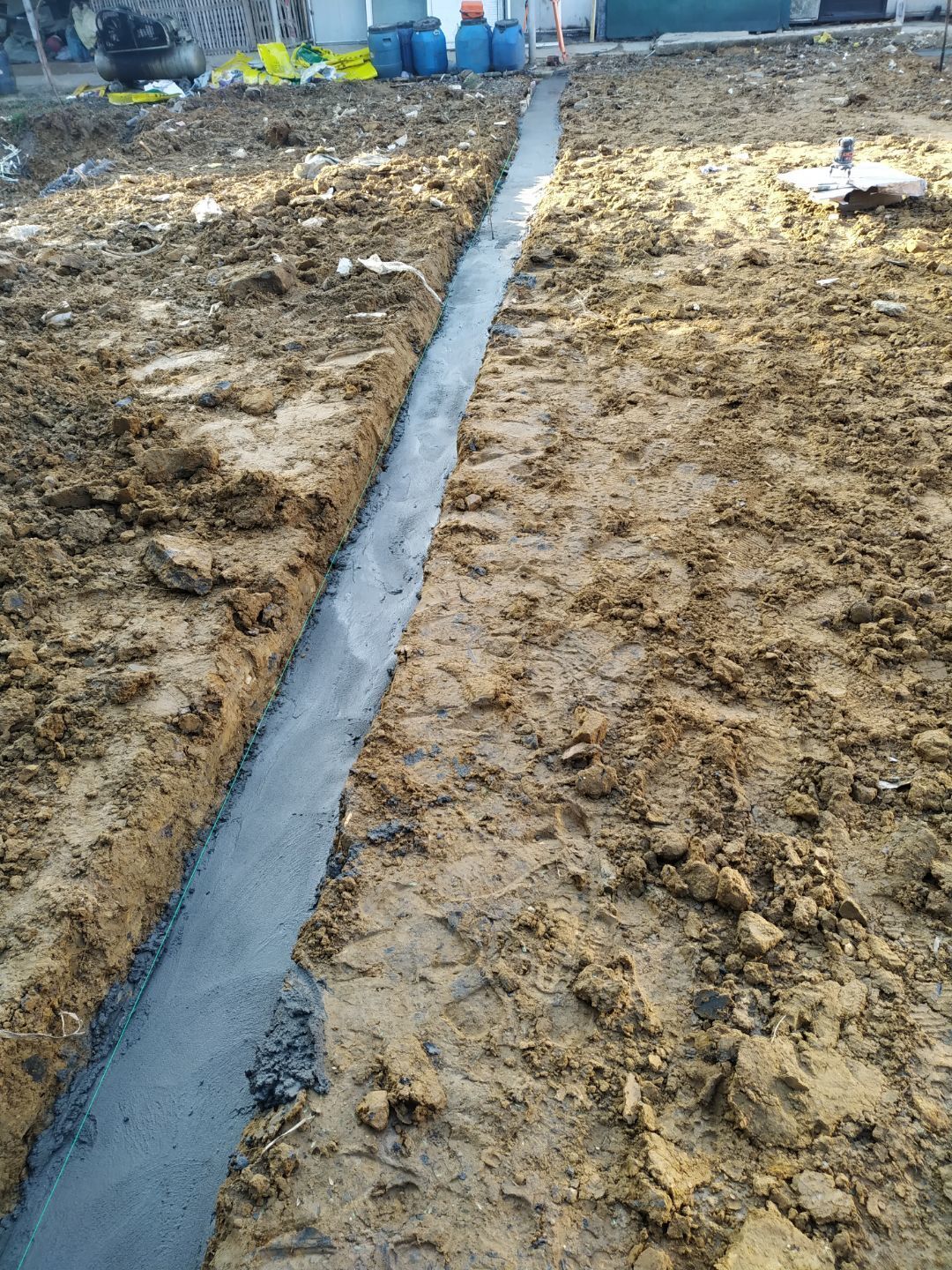 隔油池放線挖掘完成,排水溝和排水管挖掘完成