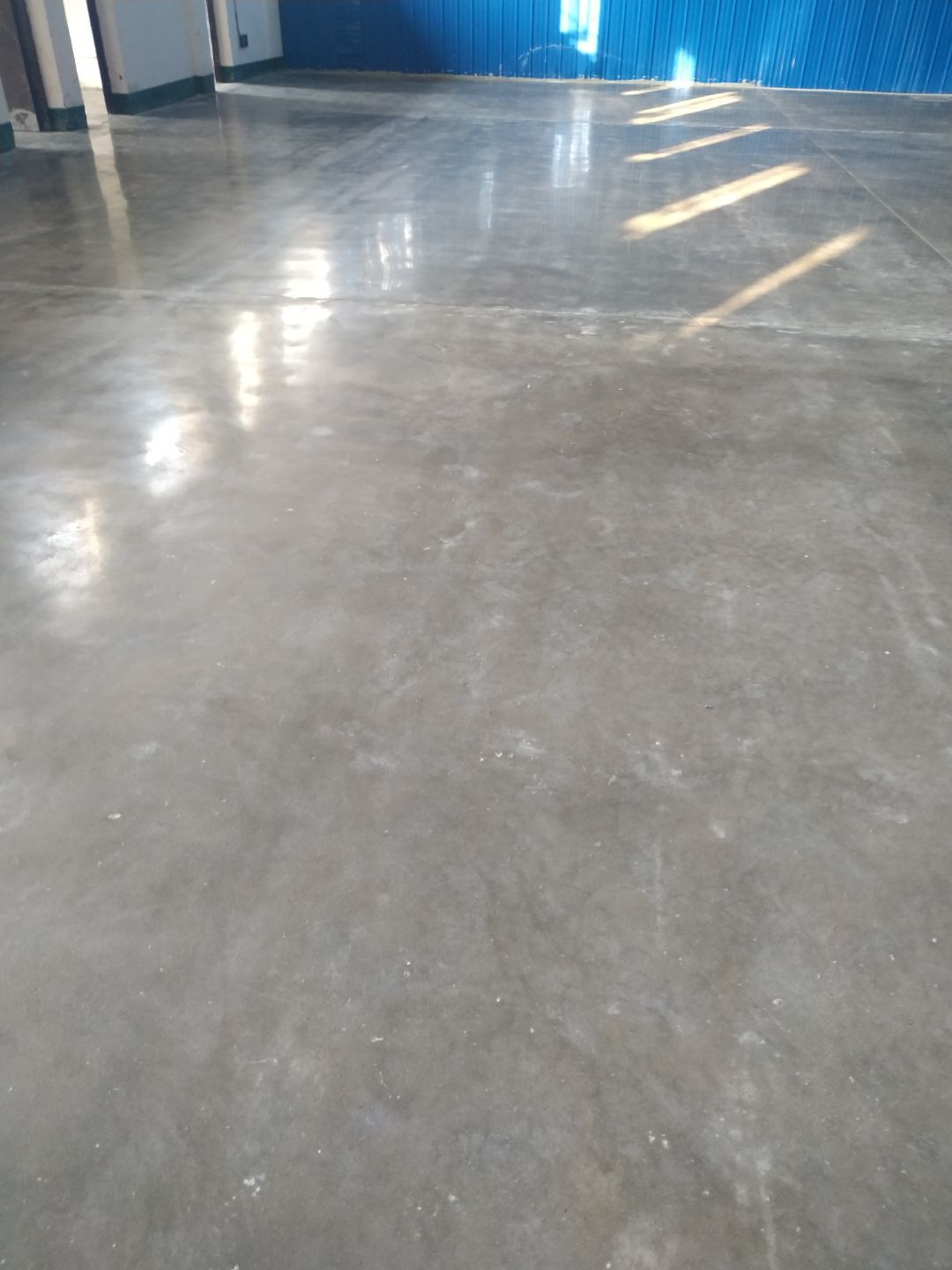 庫房固化地坪施工完成,周轉框清洗新打地坪伸縮縫切割完成。