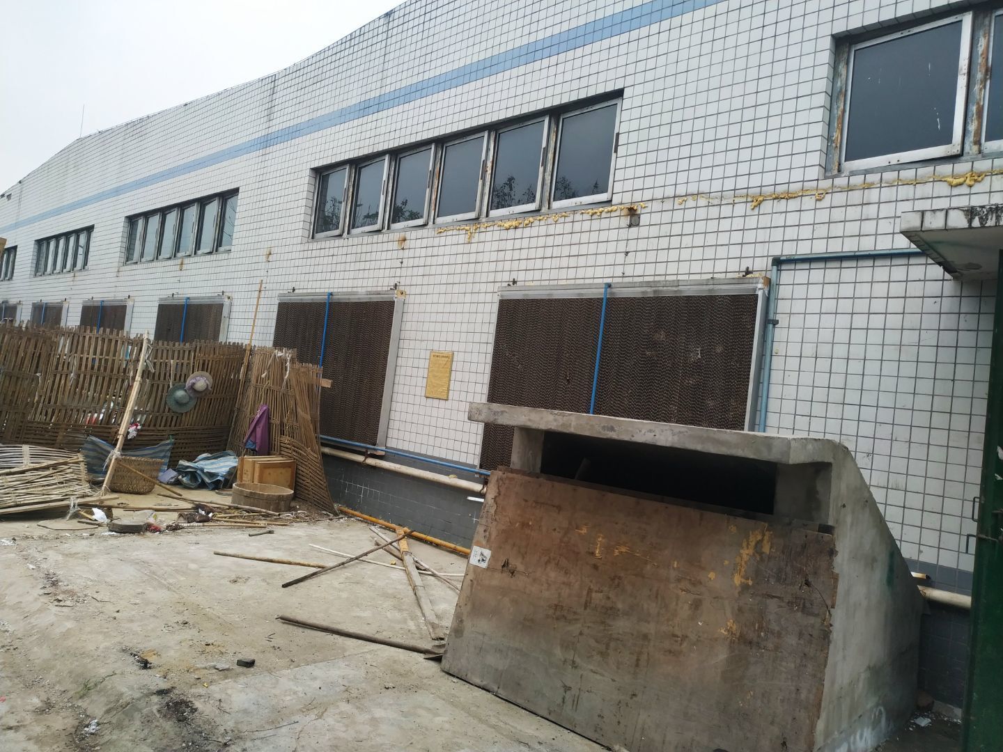 周轉框清洗間排水管貼磚完成,地面夯實完成20%,標磚和河沙轉運完成;庫房裂縫打破口完成,圍擋完成。
