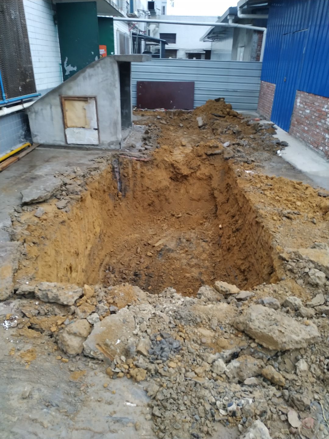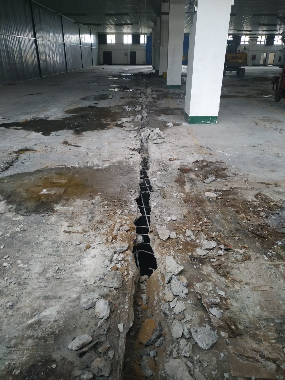 1.室外彩鋼棚拆除完成,2.煉油線排水溝、排水管破碎完成。