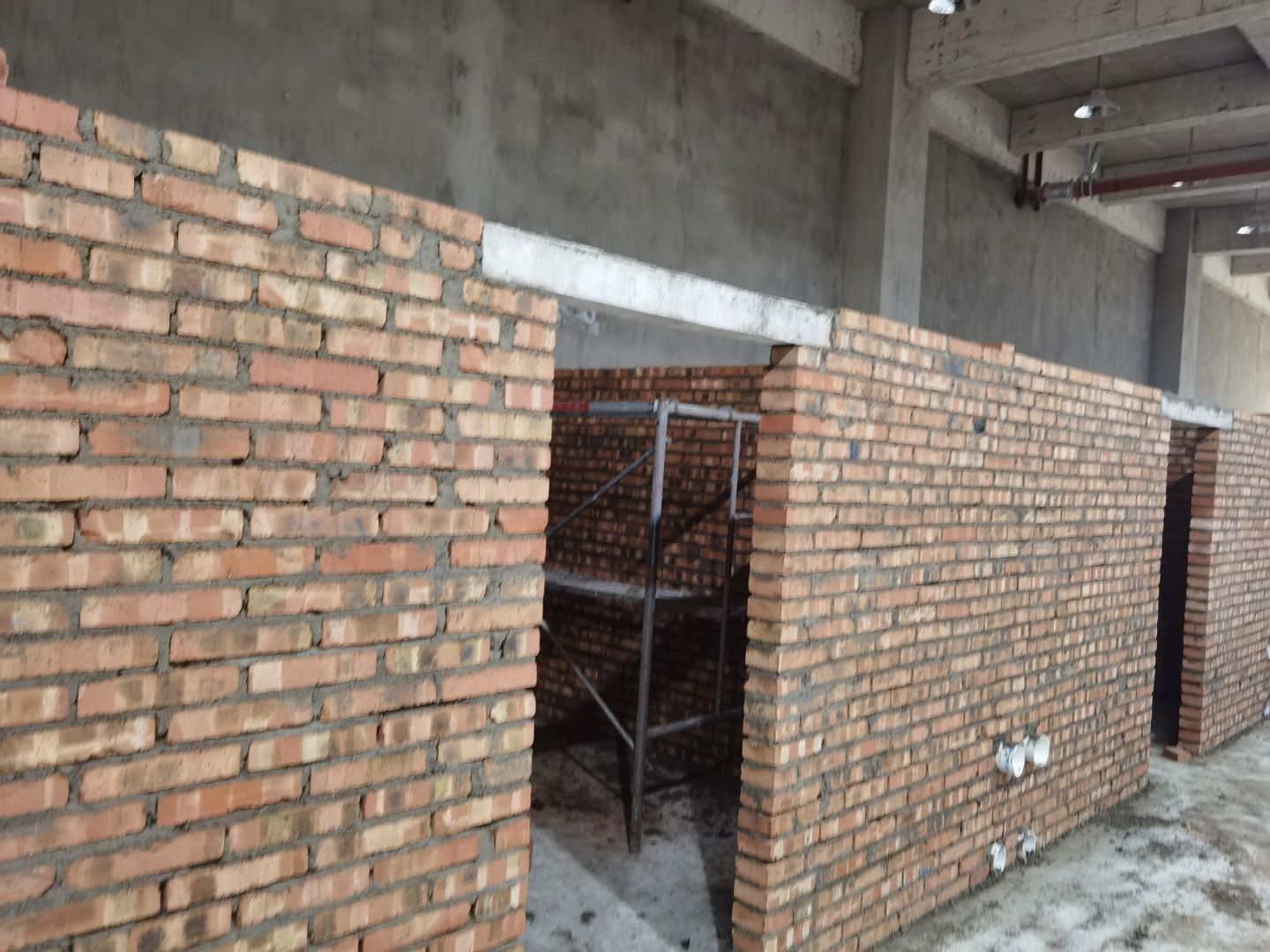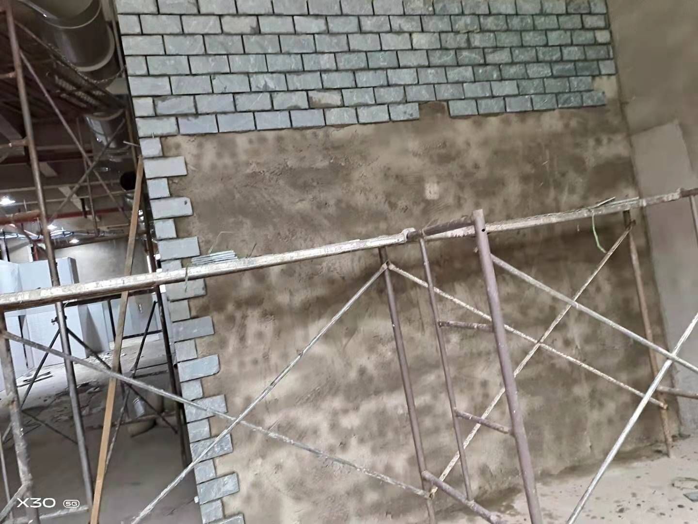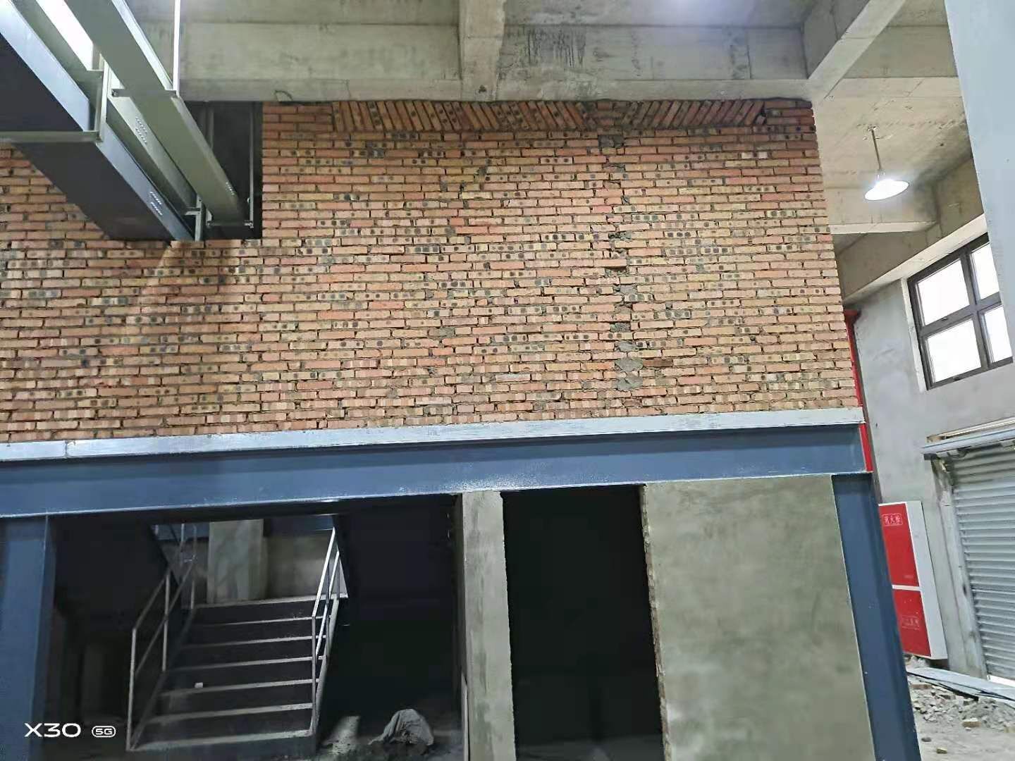 1三層磚墻砌筑 2二層磚墻貼磚 3一層破碎地面 4二三樓鋼管焊接 加固