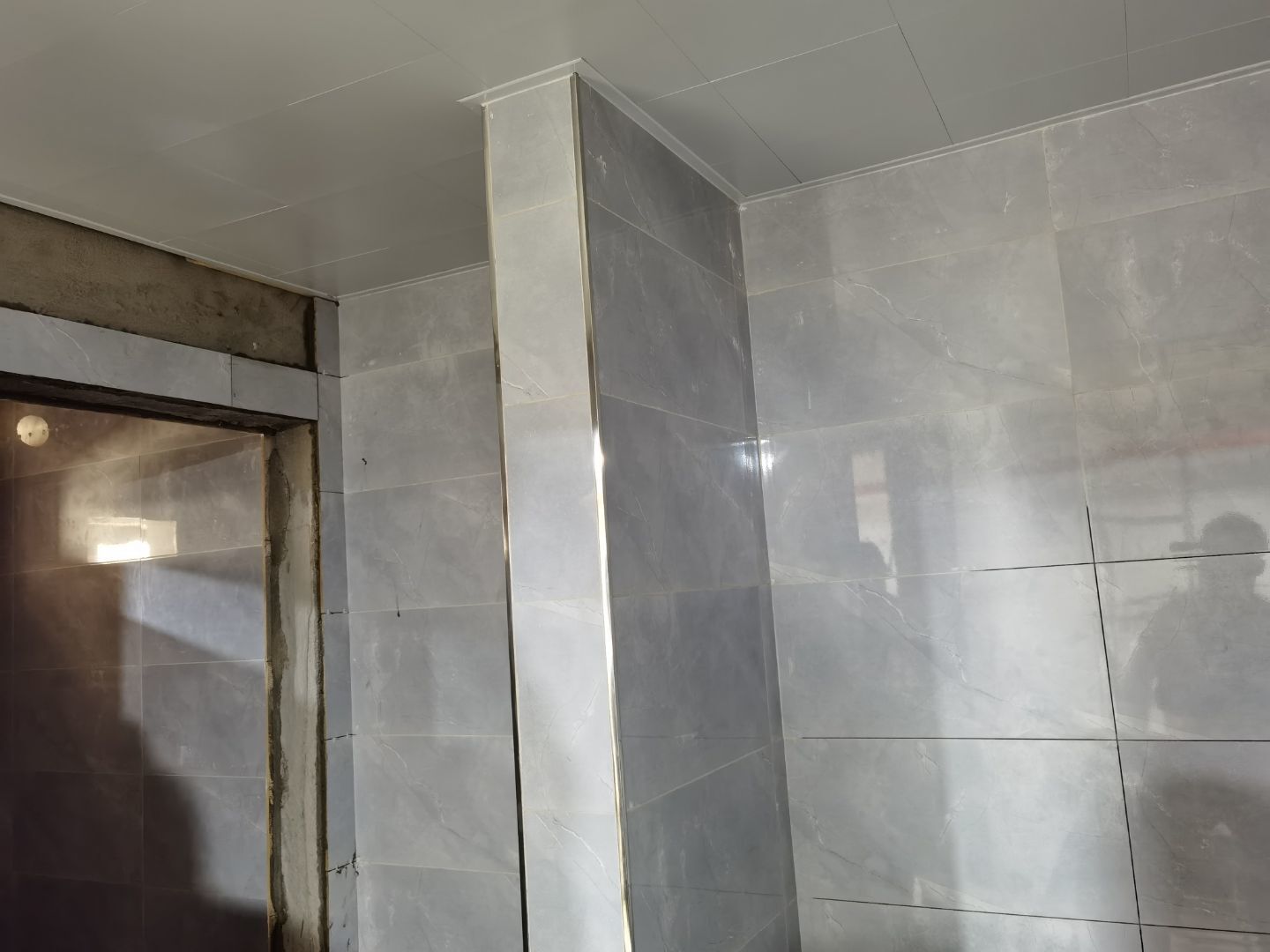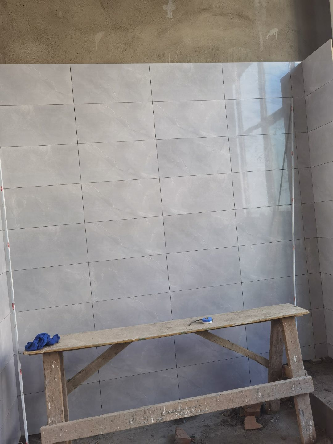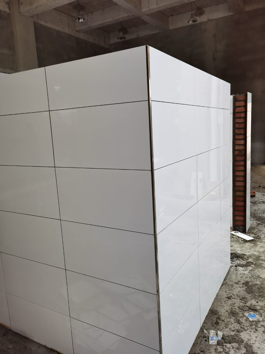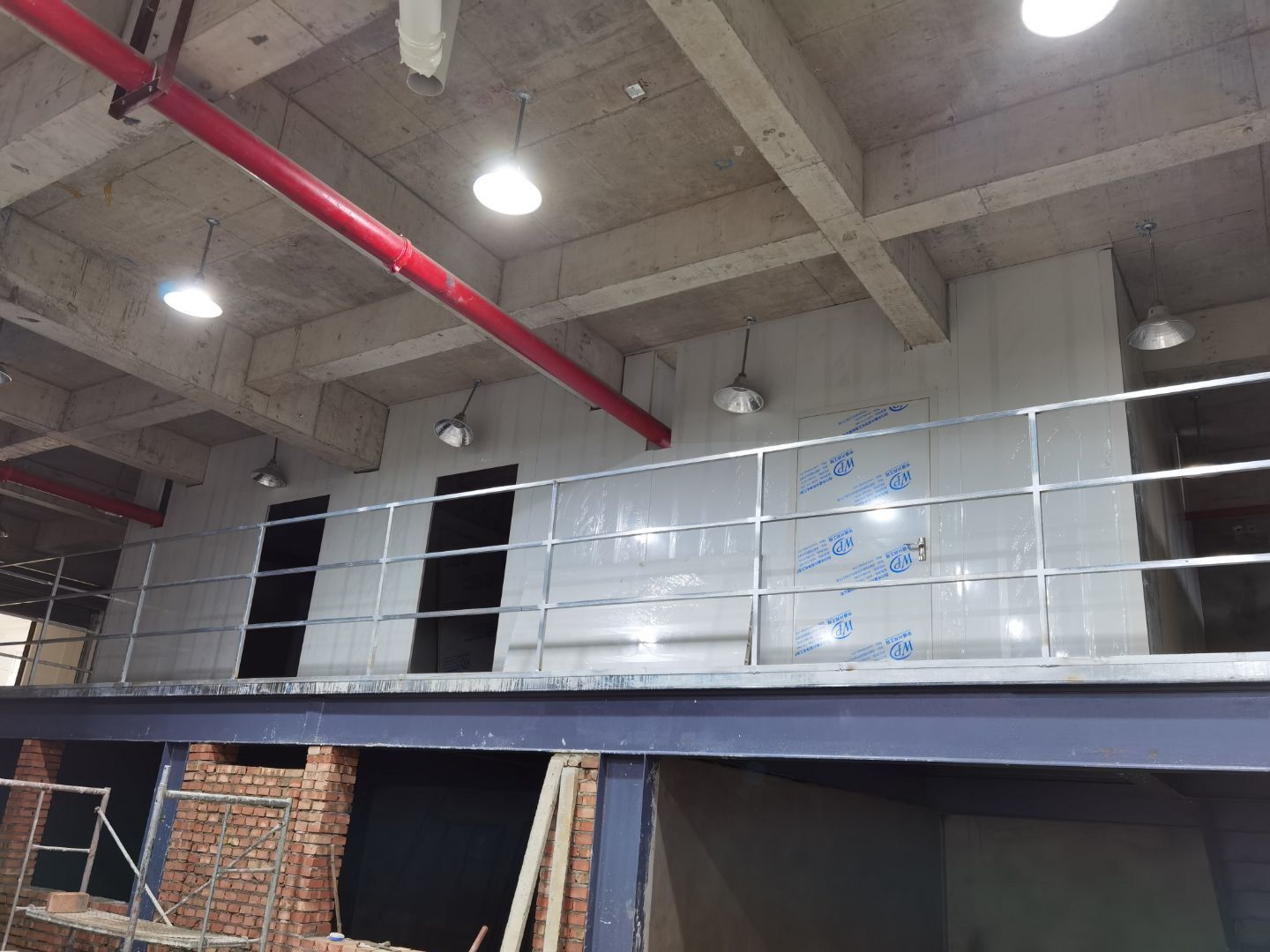1、廁所貼磚,三層烘房磚勾縫; 2、照明線路敷設 ;3、彩板門體安裝 ;4、二三樓門體安裝。
