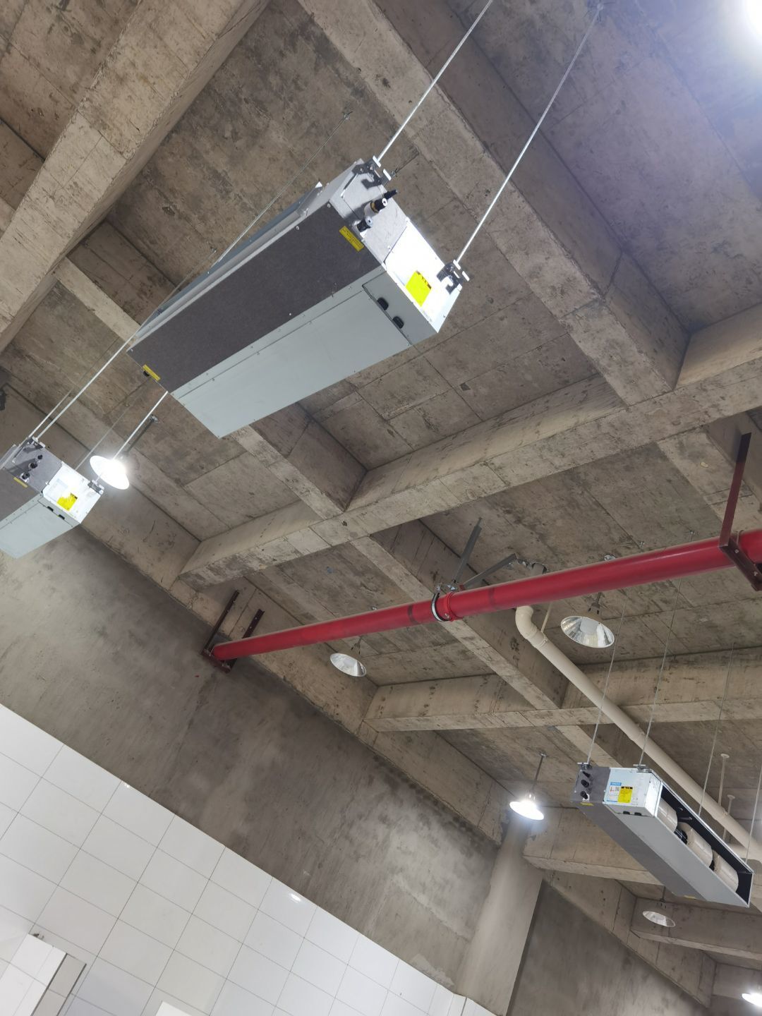 1一層鋼構打商混 2一層鋼構下衛生間砌磚抹灰 3三層衛生間貼瓷磚 4烘房內抹灰 5空調 風管 材料 人員到場