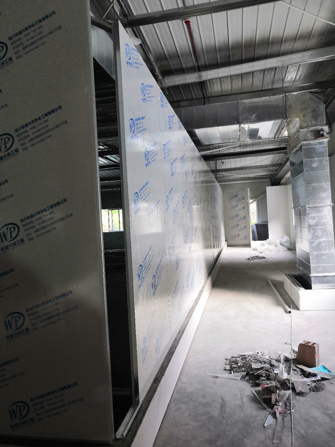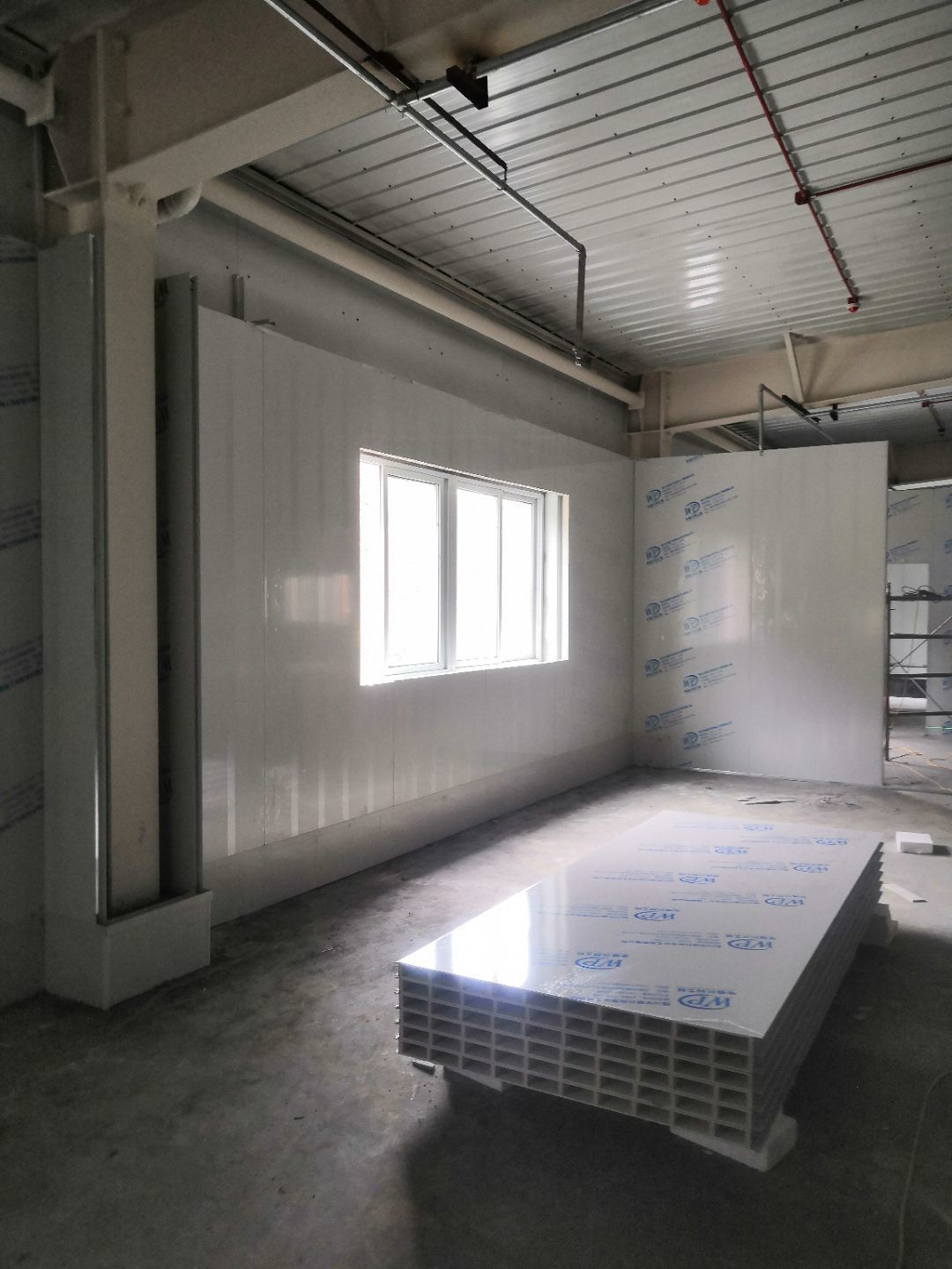 1.二樓接臭氧管子完成100%; 2.二樓裝窗況完成50%; 3二樓包消防箱,包電梯; 4.二樓裝風(fēng)淋室。
