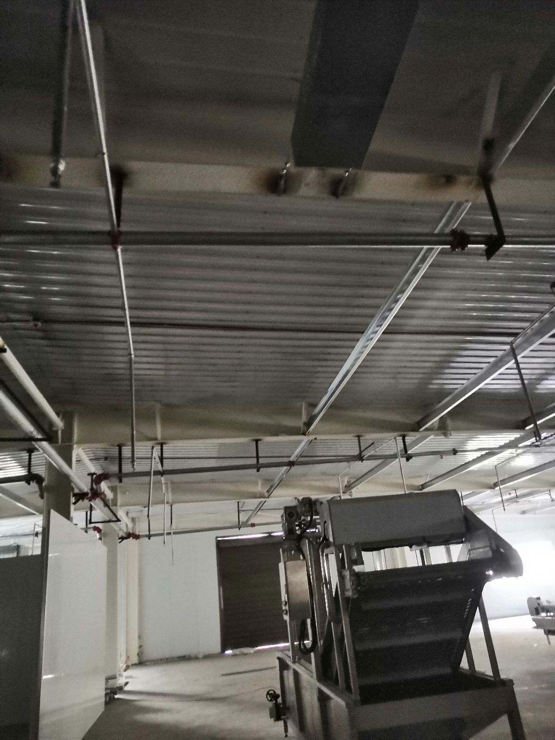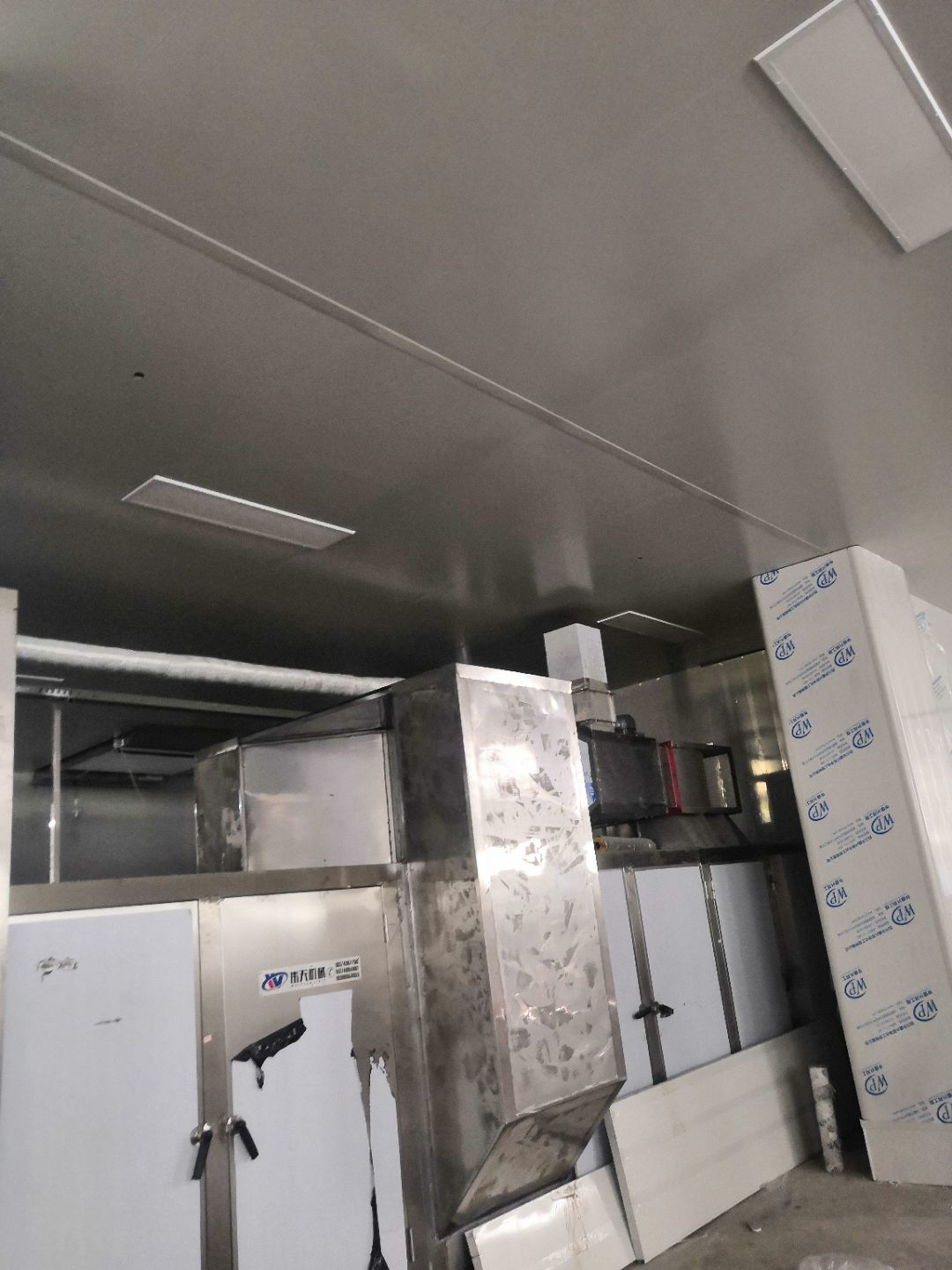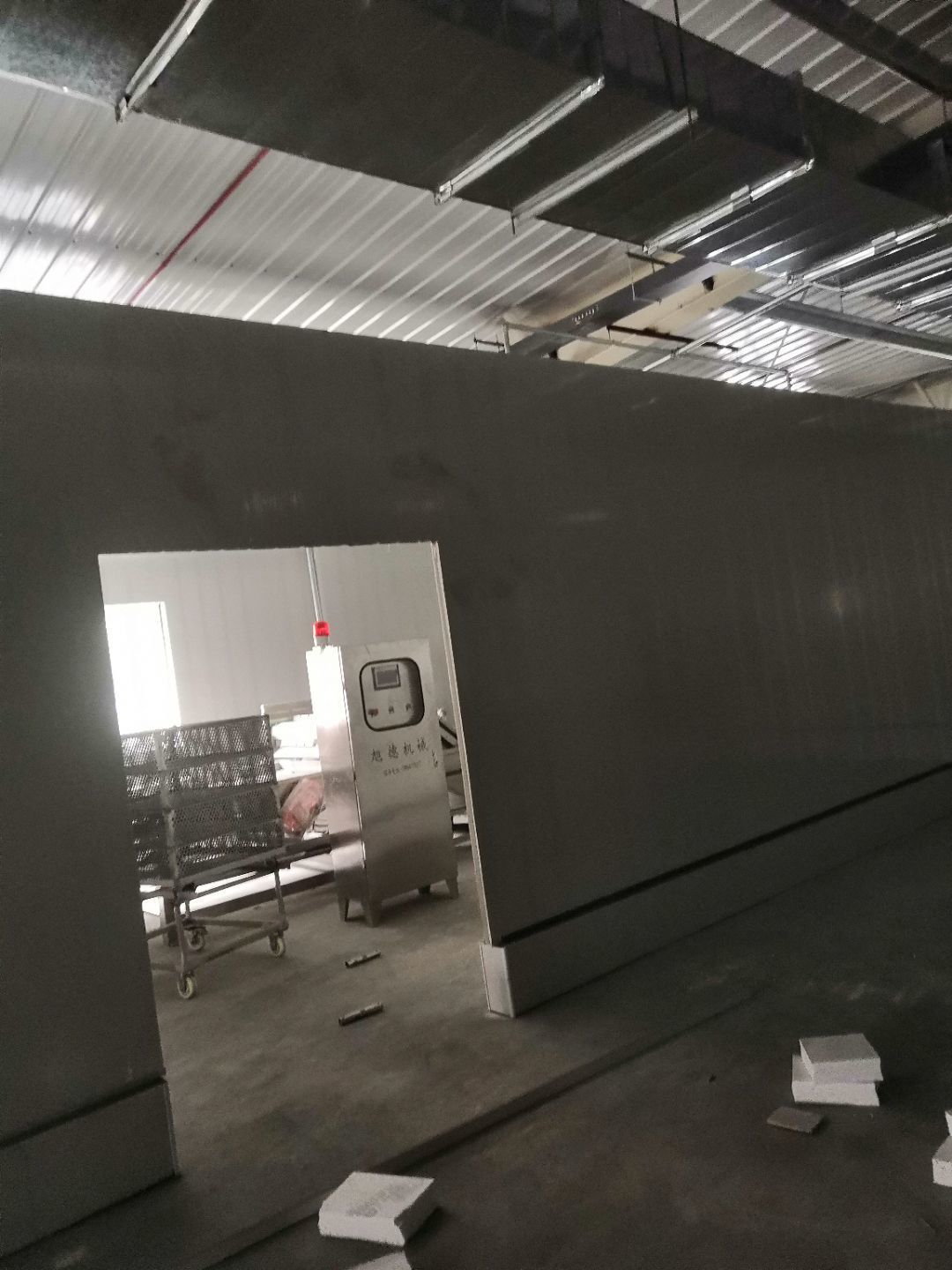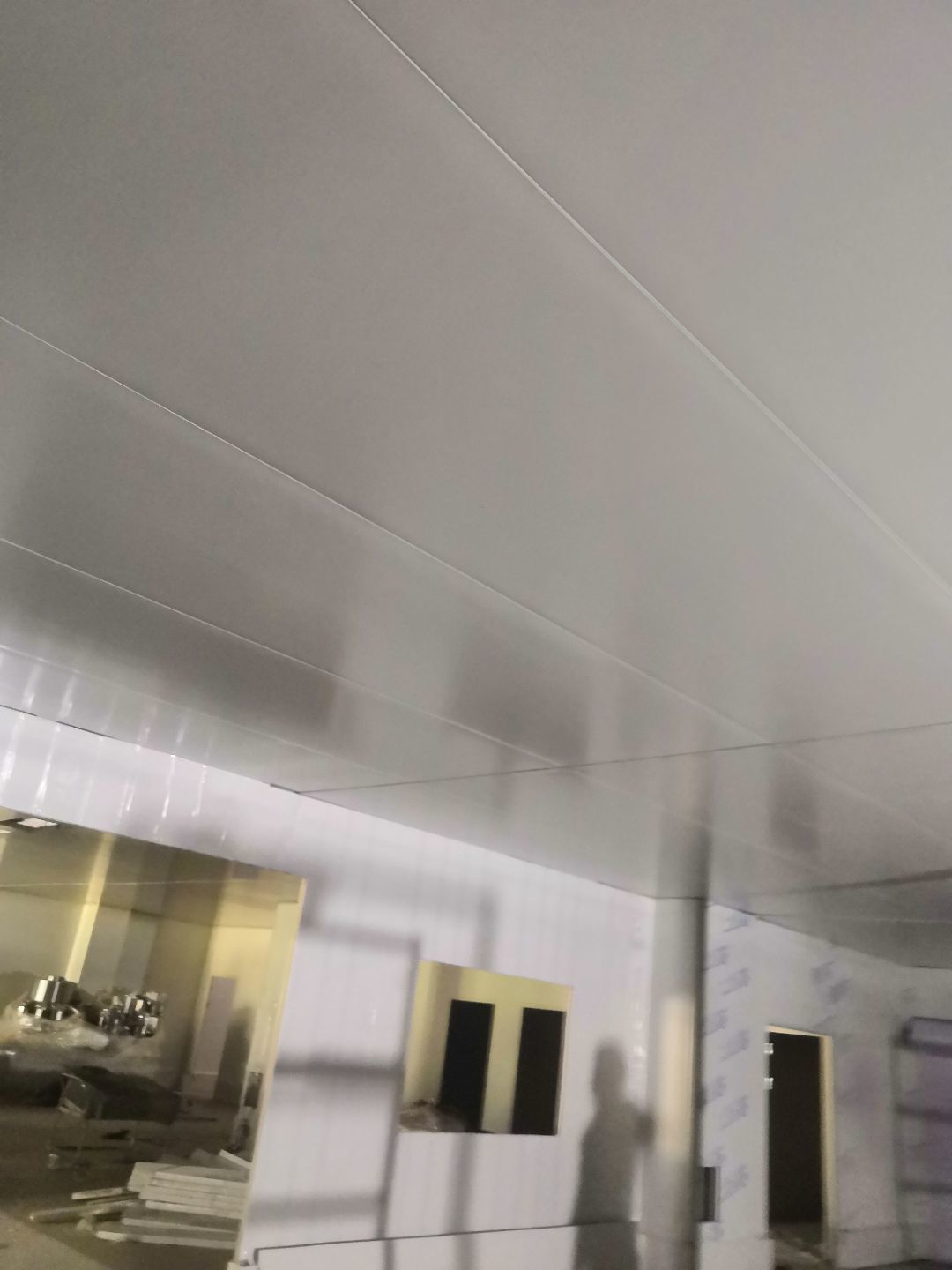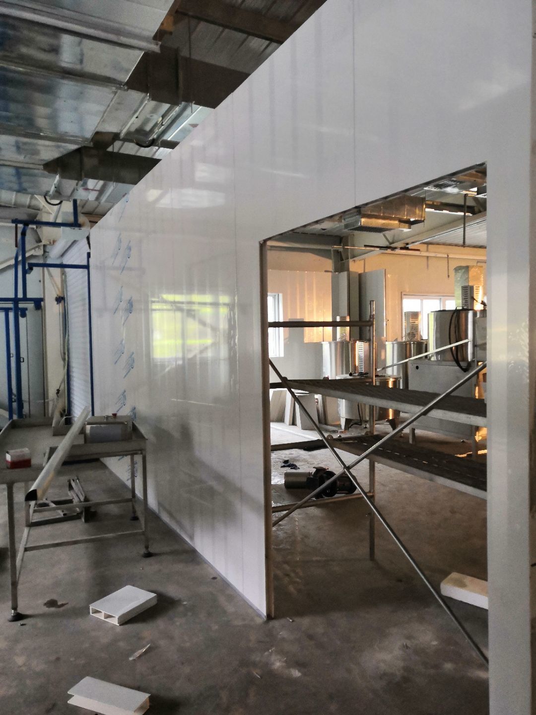 1、內(nèi)包間,殺菌間,更衣間,煉油間打膠條,(完成二樓打膠條20%); 2、內(nèi)包間拍圓弧(完成二樓圓弧5%) ;3、殺菌間包氣管子。