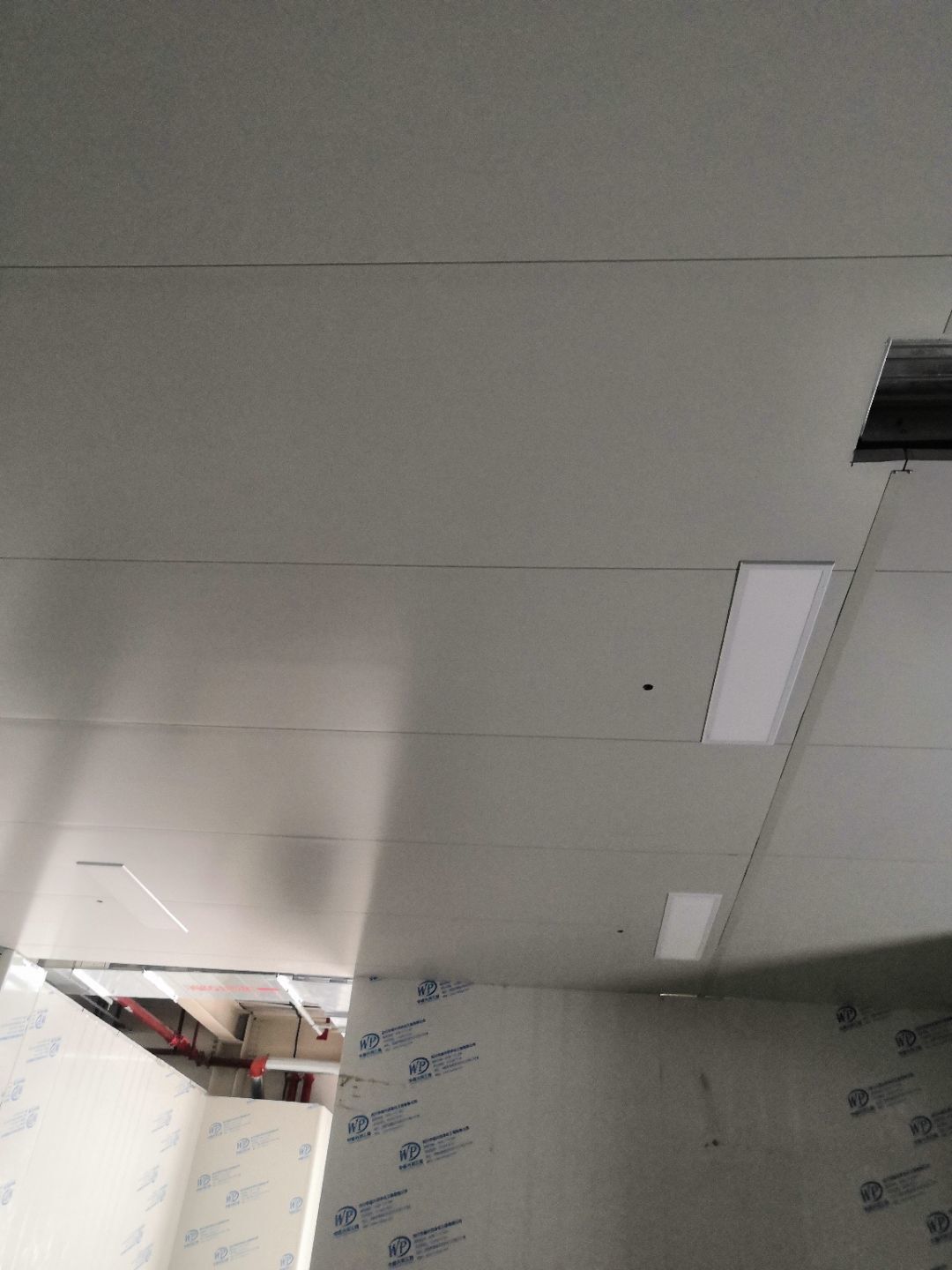 1.二樓內(nèi)包間,更衣室,消洗間燈亮;2.二樓平板燈安裝完成70%;3.一樓立墻板包柱子完成85%;4.一樓安裝門框完成15%。