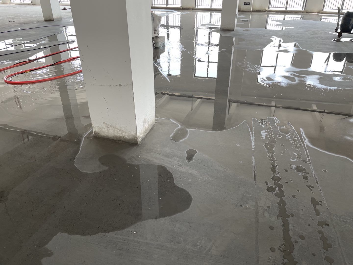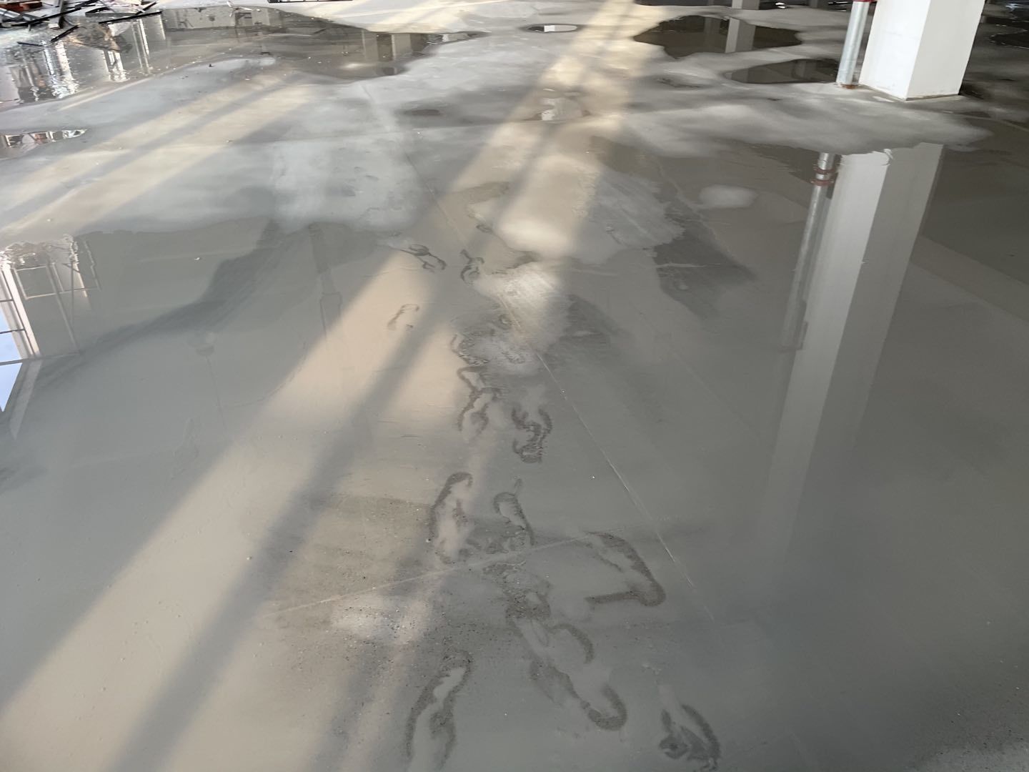 1.混凝土打耙完成,防水修補完成,蓄水試驗;2.金剛砂地坪完成,擋水墻瓷磚完成;3.彩鋼板隔斷材料進場。