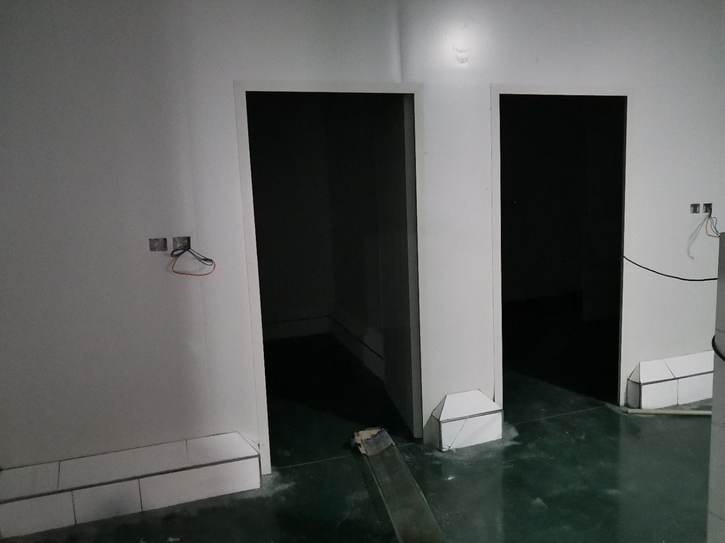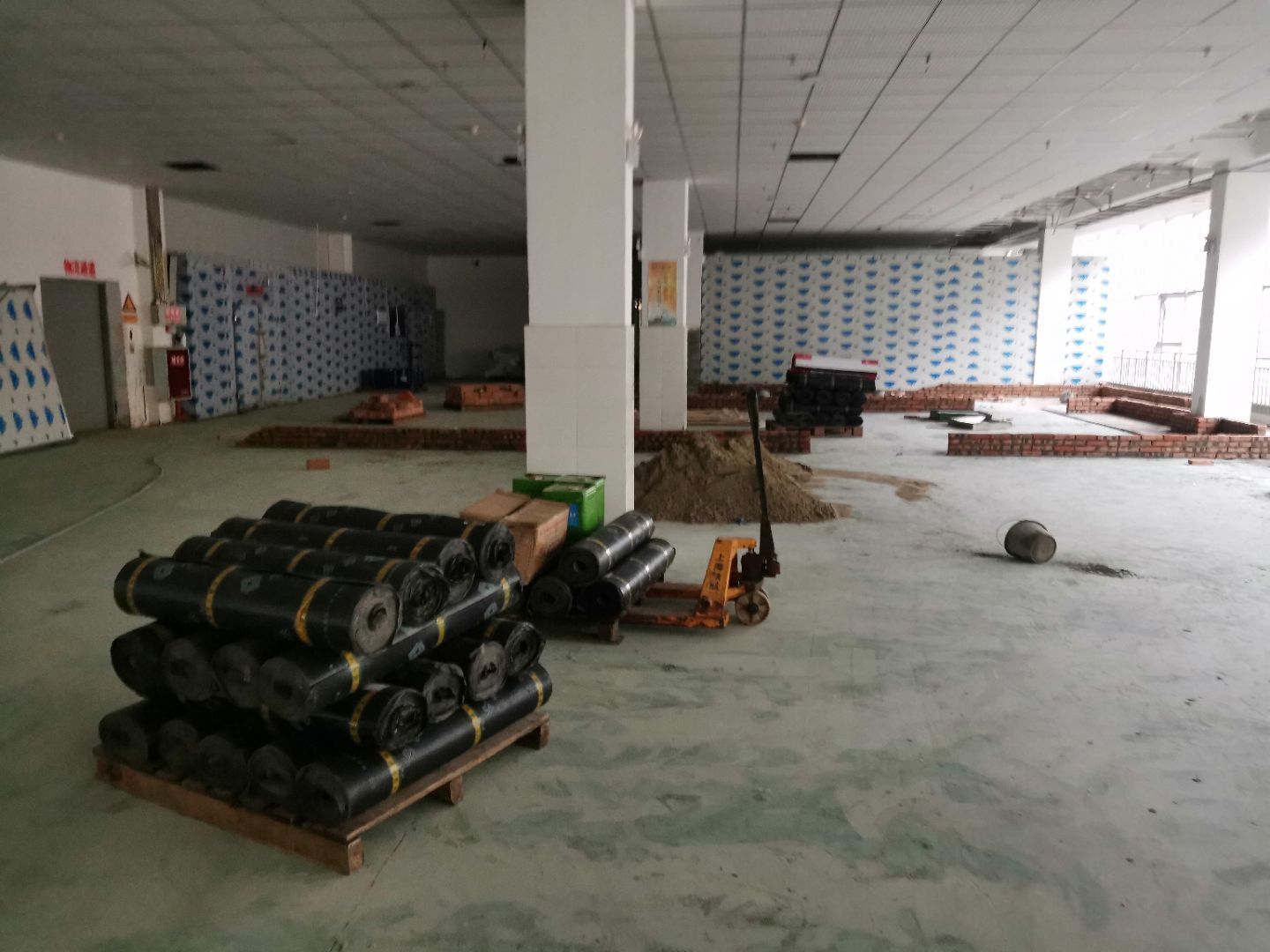 1:金剛砂固化地坪完成; 2:彩鋼墻板完成,收尾完成50%; 3:水電安裝完成90%; 4:腳踏池防水完成50%。
