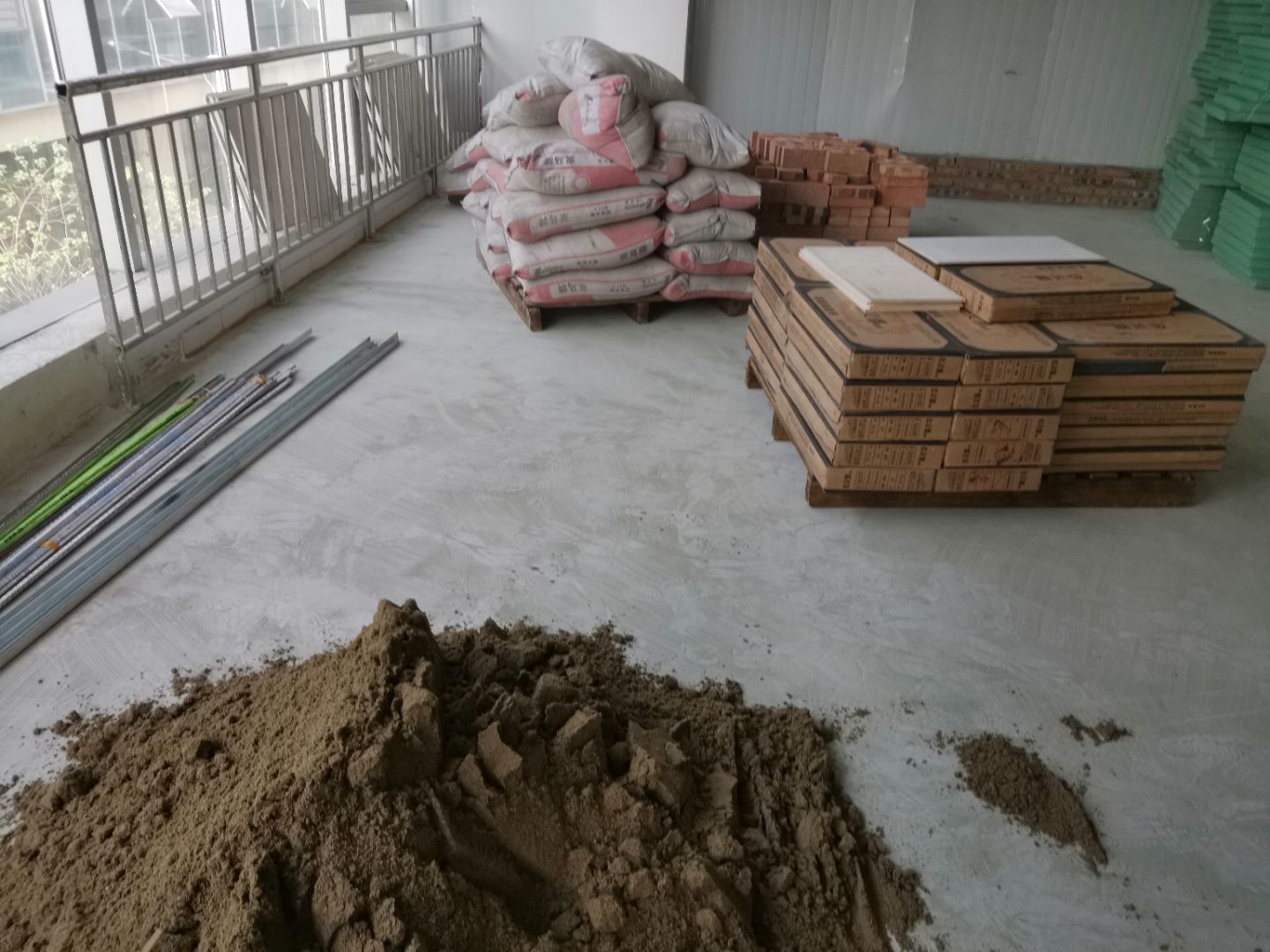 1、擋水墻磚砌完成80%; 2、防水材料進場。