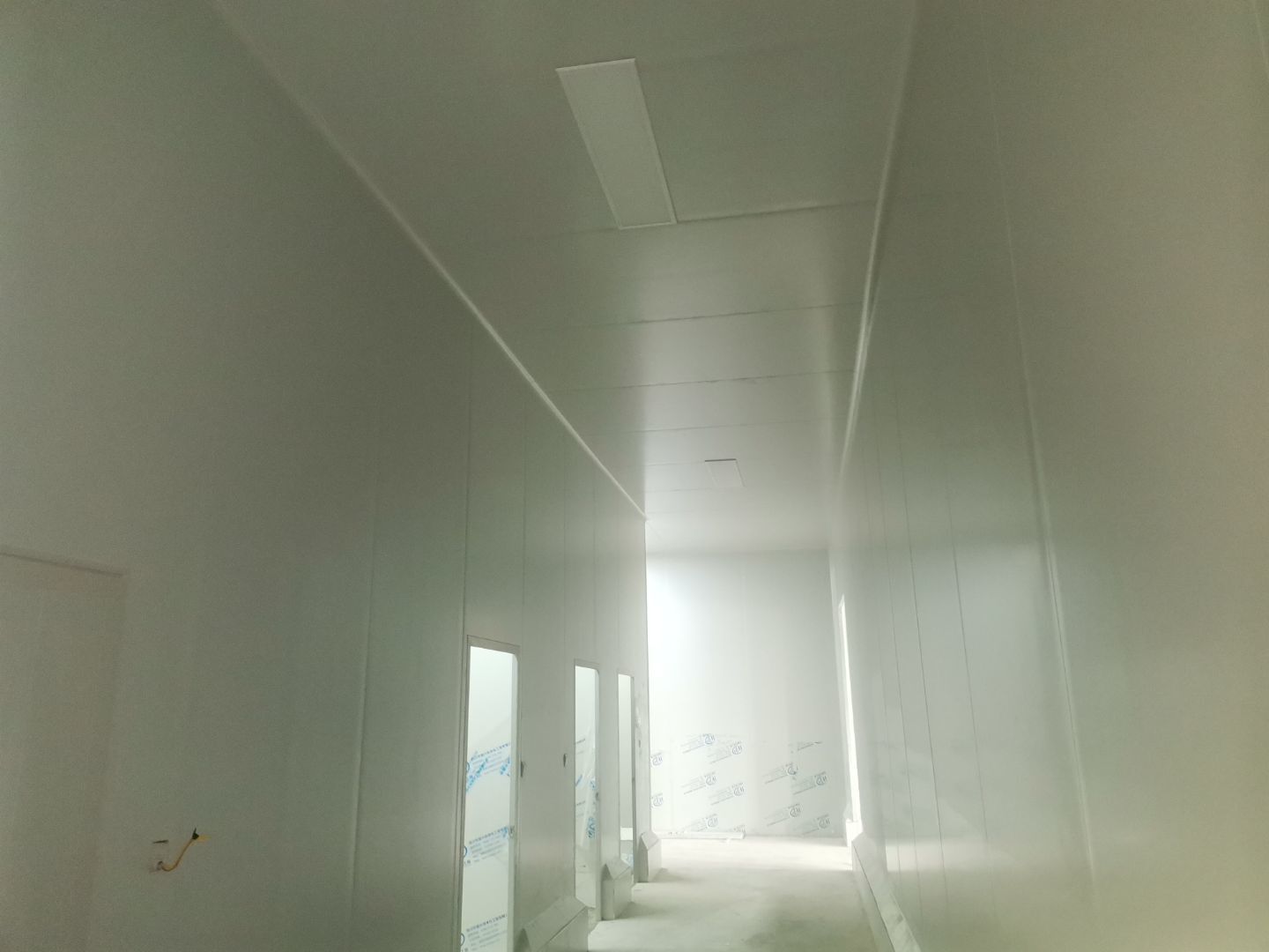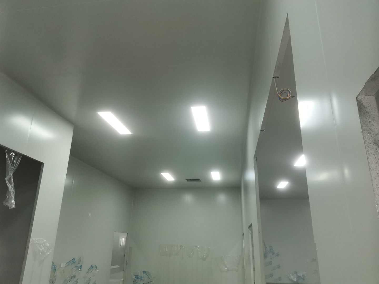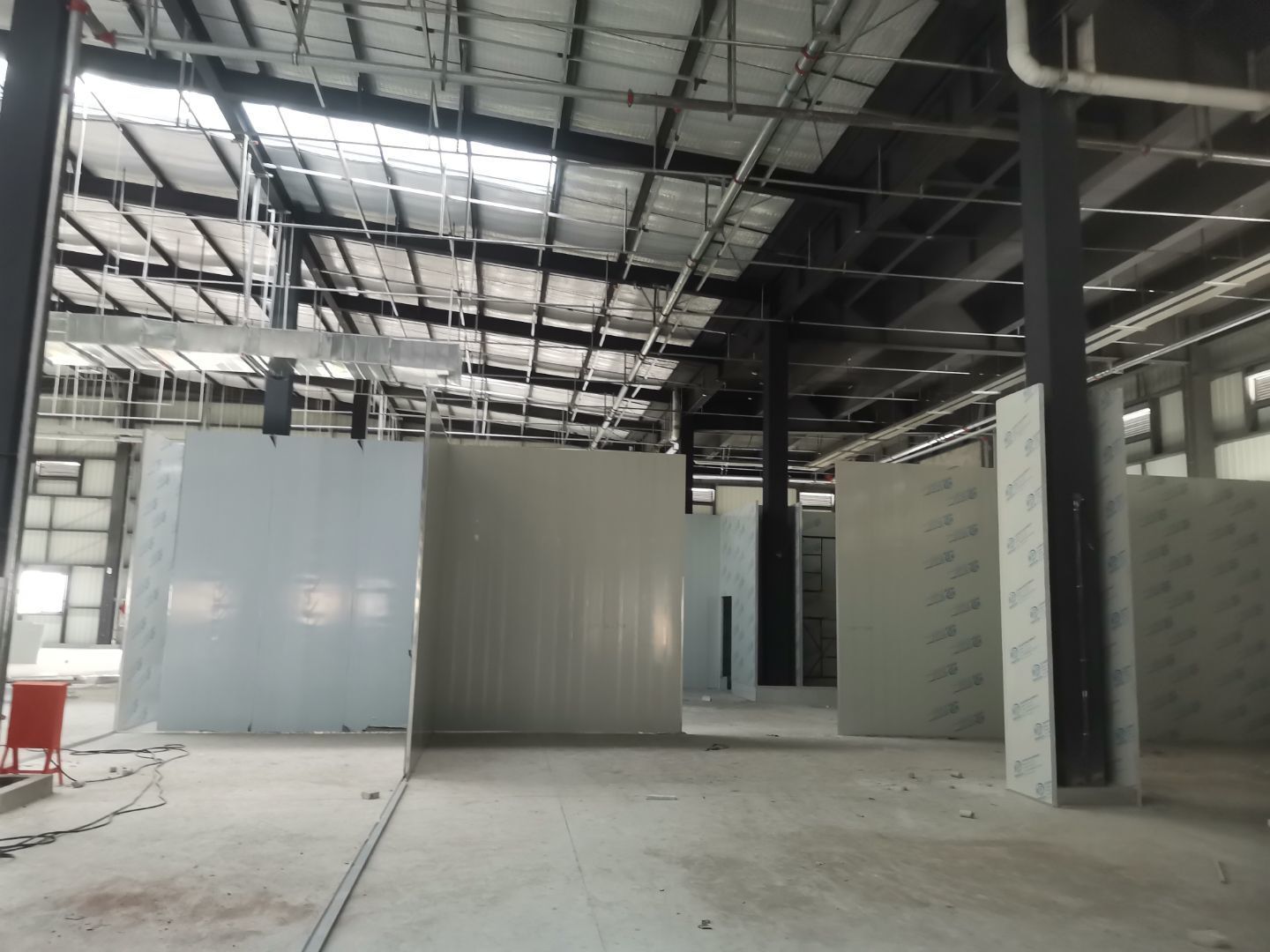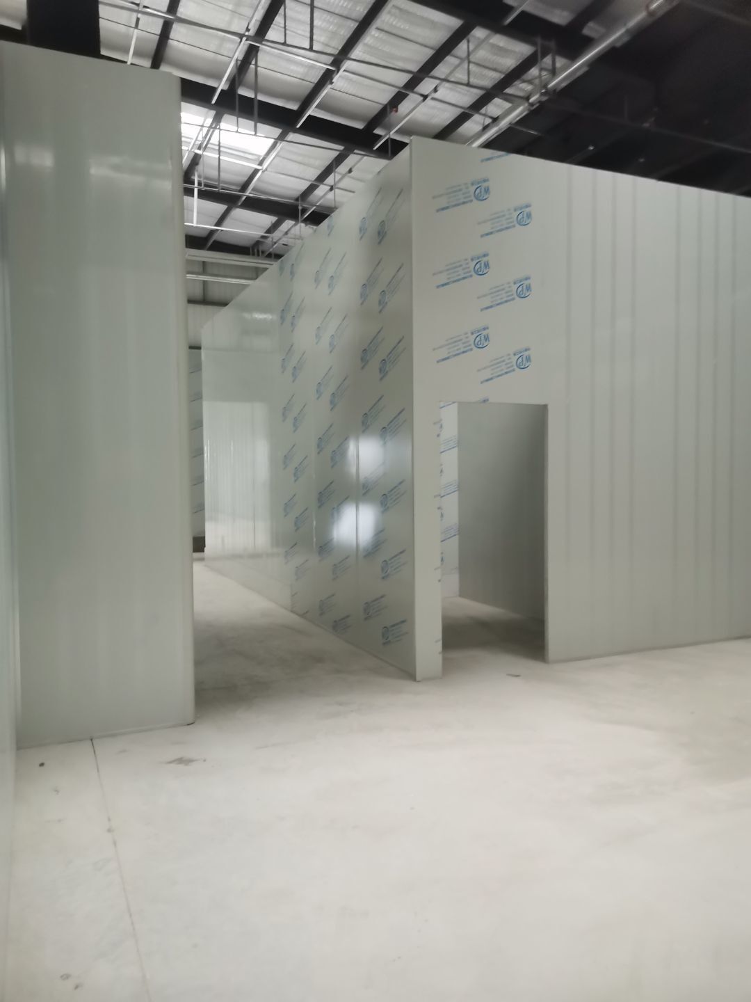1、擋水墻貼磚完成95%(剩余吊裝口完成后實(shí)施); 2、凍庫(kù)庫(kù)板安裝完成100%,頂板完成100%; 3、低溫庫(kù)加熱絲安裝完成100%,保護(hù)層完成100%,擠塑板完成100%,凍庫(kù)地面混凝土澆筑完成100%,切縫完成,養(yǎng)護(hù); 3、彩鋼板安裝完成85%; 4、頂板安裝完成85%; 5、實(shí)驗(yàn)室墻板頂板完成100%; 6、化驗(yàn)室墻板頂板完成100%; 7、工具間墻板完成100%。