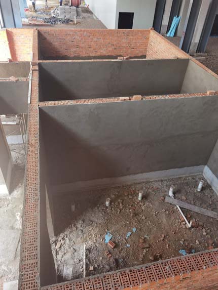 施工第16天,今日施工內容 1,擋水墻抹灰 2,廁所澆筑墊層 3,鋼構平臺進場施工