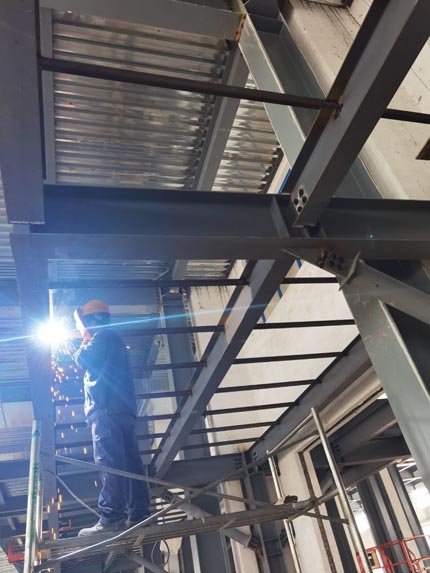 1,一樓地槽 彩板安裝 2,一樓消防立管安裝 3,一層鋼構平臺施工 4,一層擋水墻抹灰 5,樓層鋼構焊接 加固 6,一層空調水管保溫 7,一層防排煙施工 8,二樓地槽 彩板安裝