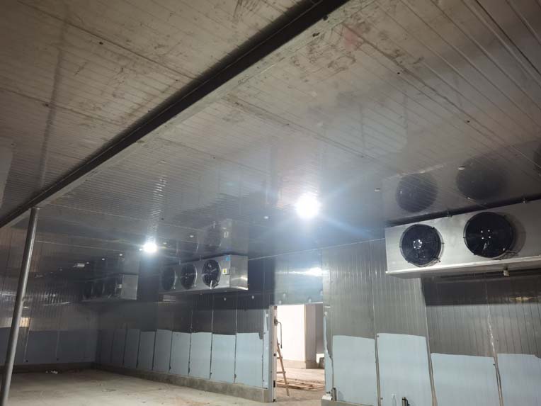 1,排水管安裝 2,鋼構施工 3,場地建渣清理 4,凍庫板材到場 安裝 5,廁所墻體砌筑 6,混凝土施工