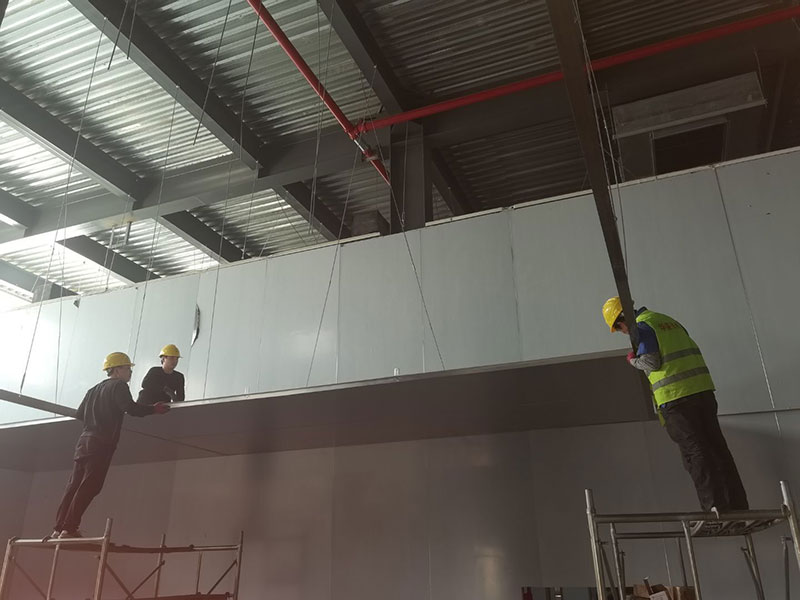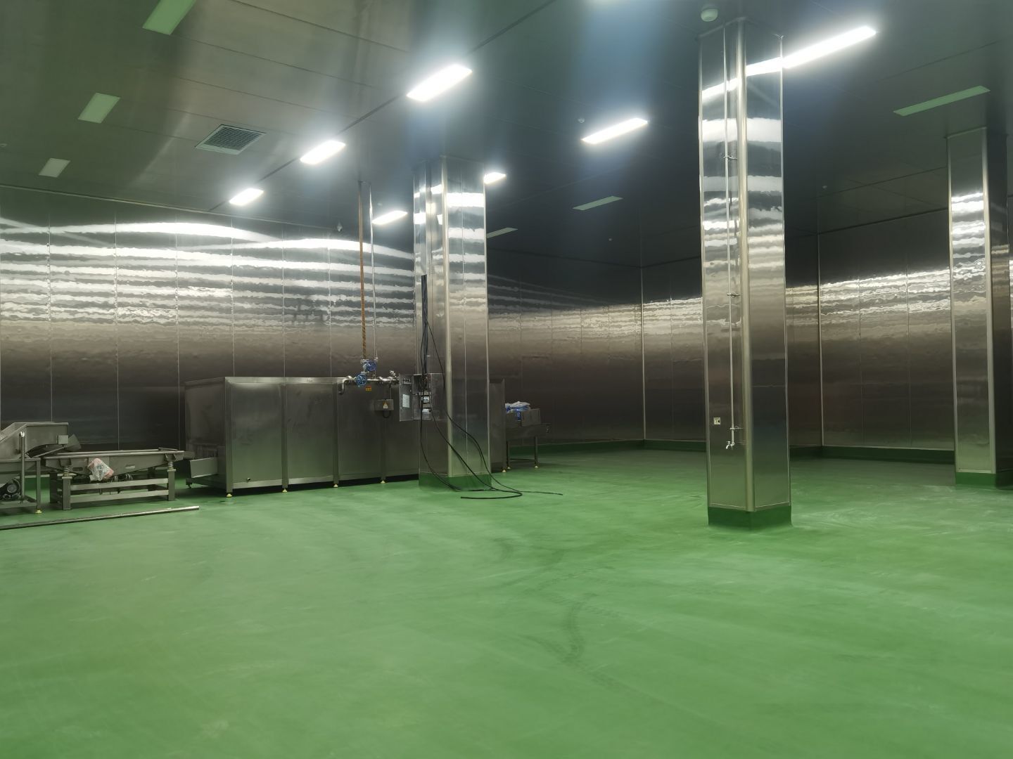 1,場地 整平 2,鋼構施工 3,不銹鋼排水溝安裝 4,不銹鋼水溝 焊接 5,場地建渣清理 6,凍庫板材到場 安裝 7,消防進場 8,混凝土準備工作