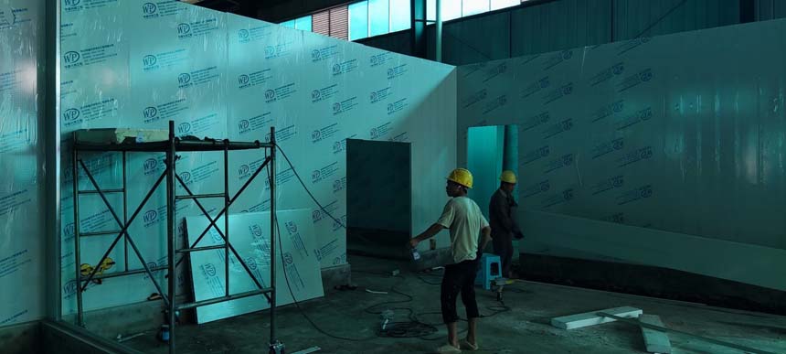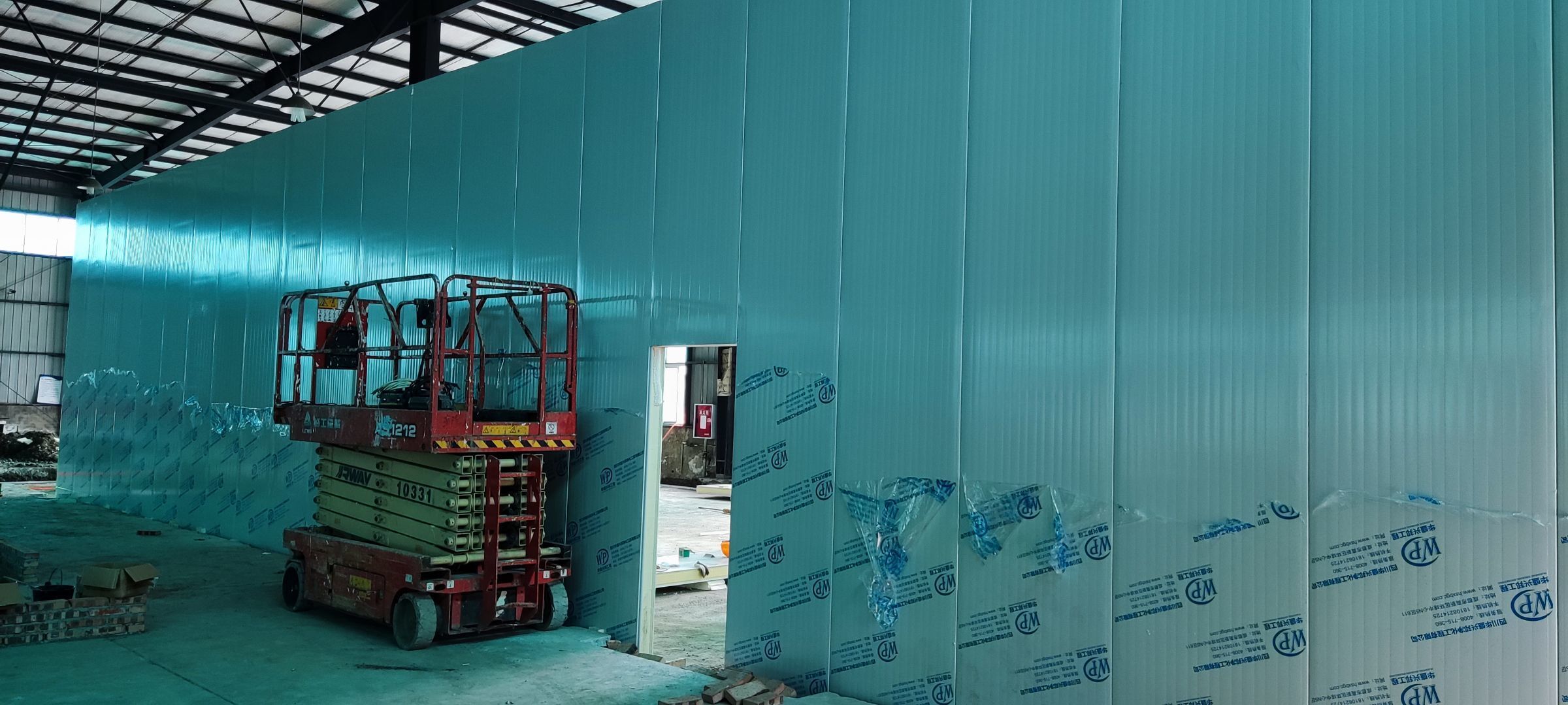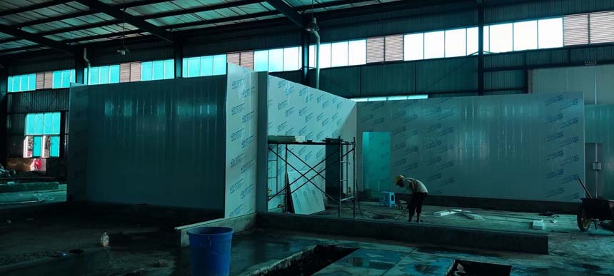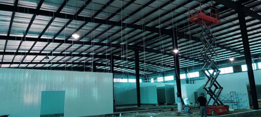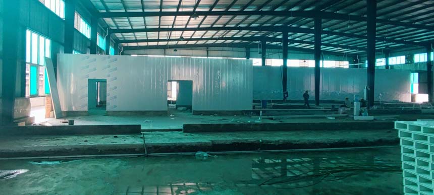 凍庫材料到場,排水管安裝,凍庫隔斷施工