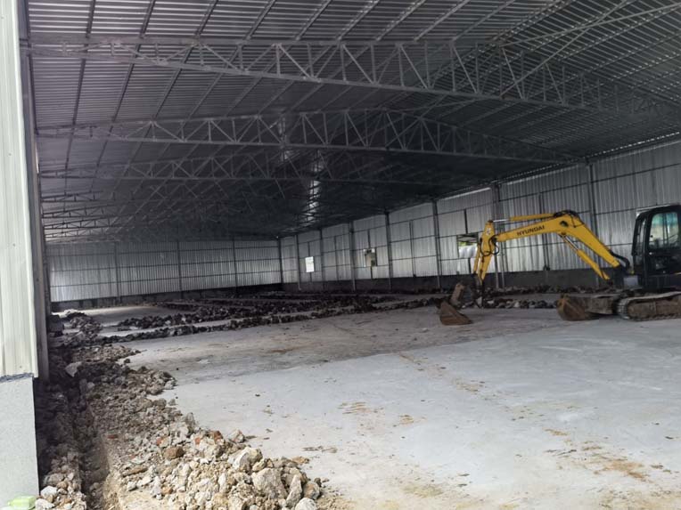 1.浸泡間與煮制間彩鋼墻板安裝完成百分之八十。 2.混凝土澆筑準備工作完成。