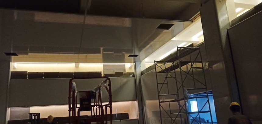 熬制間金剛砂地面已完成 彩鋼板夾層已開始立墻板