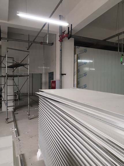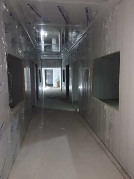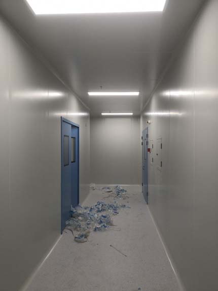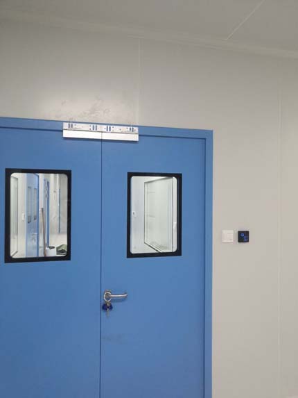 1.風淋室安裝完成 2.成品門鎖安裝完畢100% 3.成品門膠條安裝完成100% 4.工況燈安裝完成95% 5.插座安裝完成100%