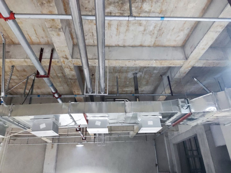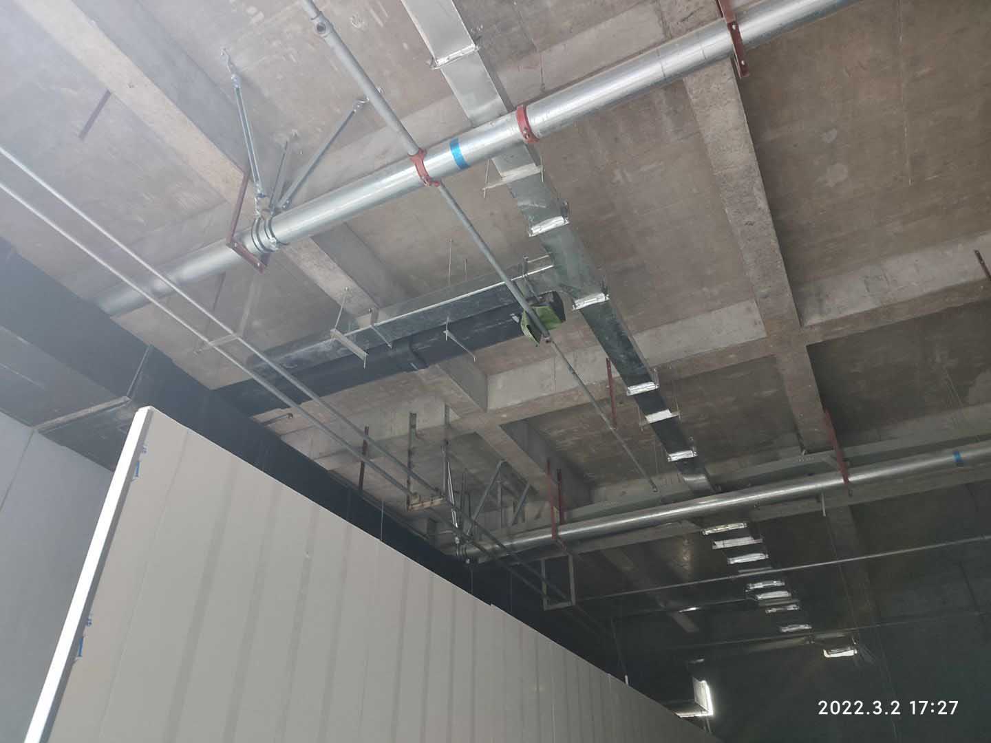 1,不銹鋼排水管安裝完成90% 2,空調水主管安裝完成70%