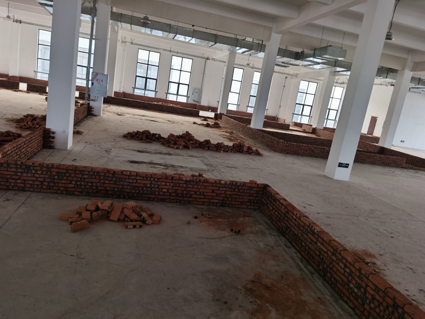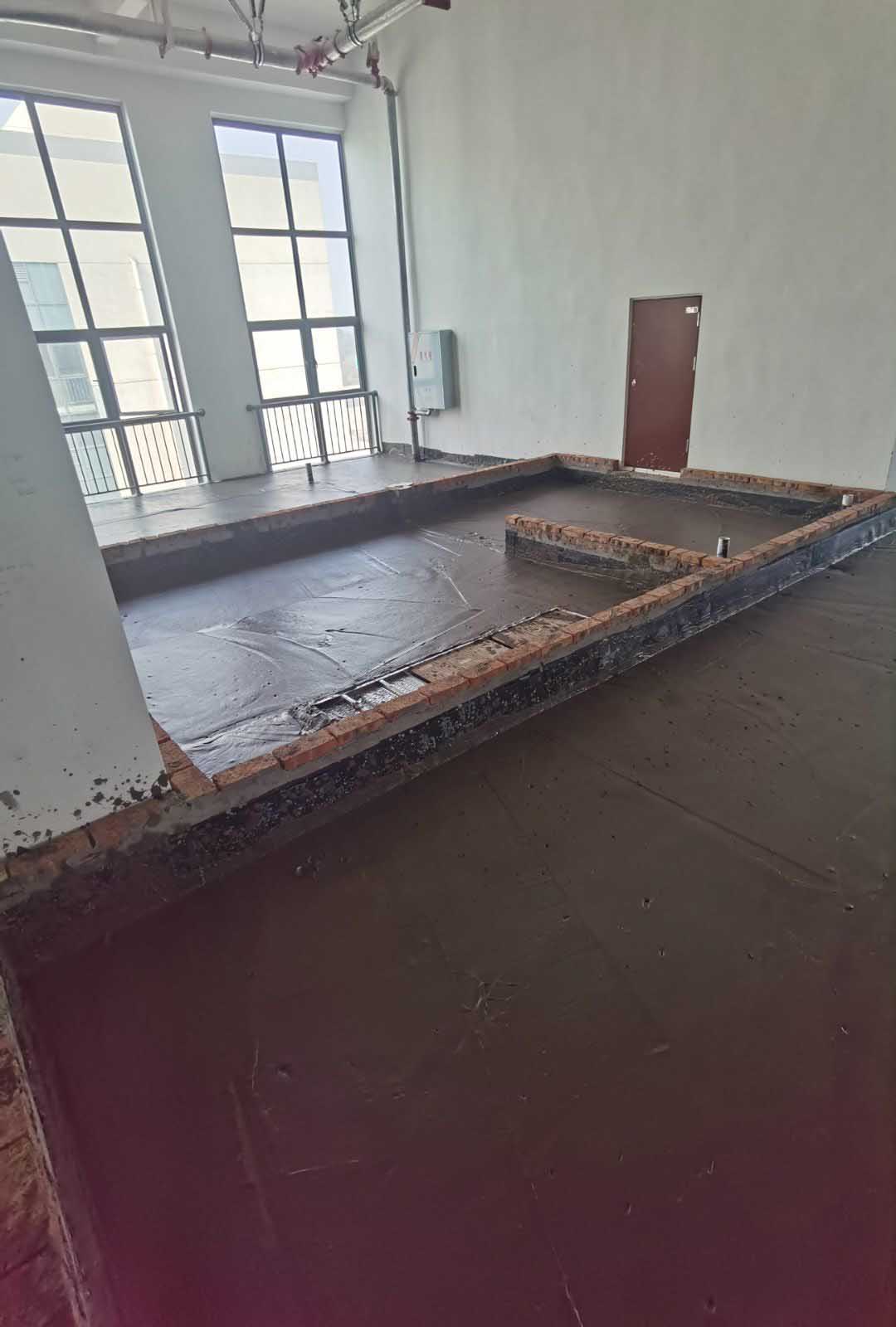 今日施工內容。 ①土建材料二次轉運上樓進度完成100% ②擋水墻施工進度完成100% ③防水施工第8天。進度完成100% ④排水溝砌磚第5天,完成進度100% ⑤室內排水溝貼磚第3天完成進度100% ⑥外墻排水施工第2天完成進度100% ⑦室內排水溝不繡鋼折邊件焊接完成100% ⑧防水閉水試驗已完成 ⑨發泡混凝土已完成100% ⑩凍庫鋼筋綁扎完成100%