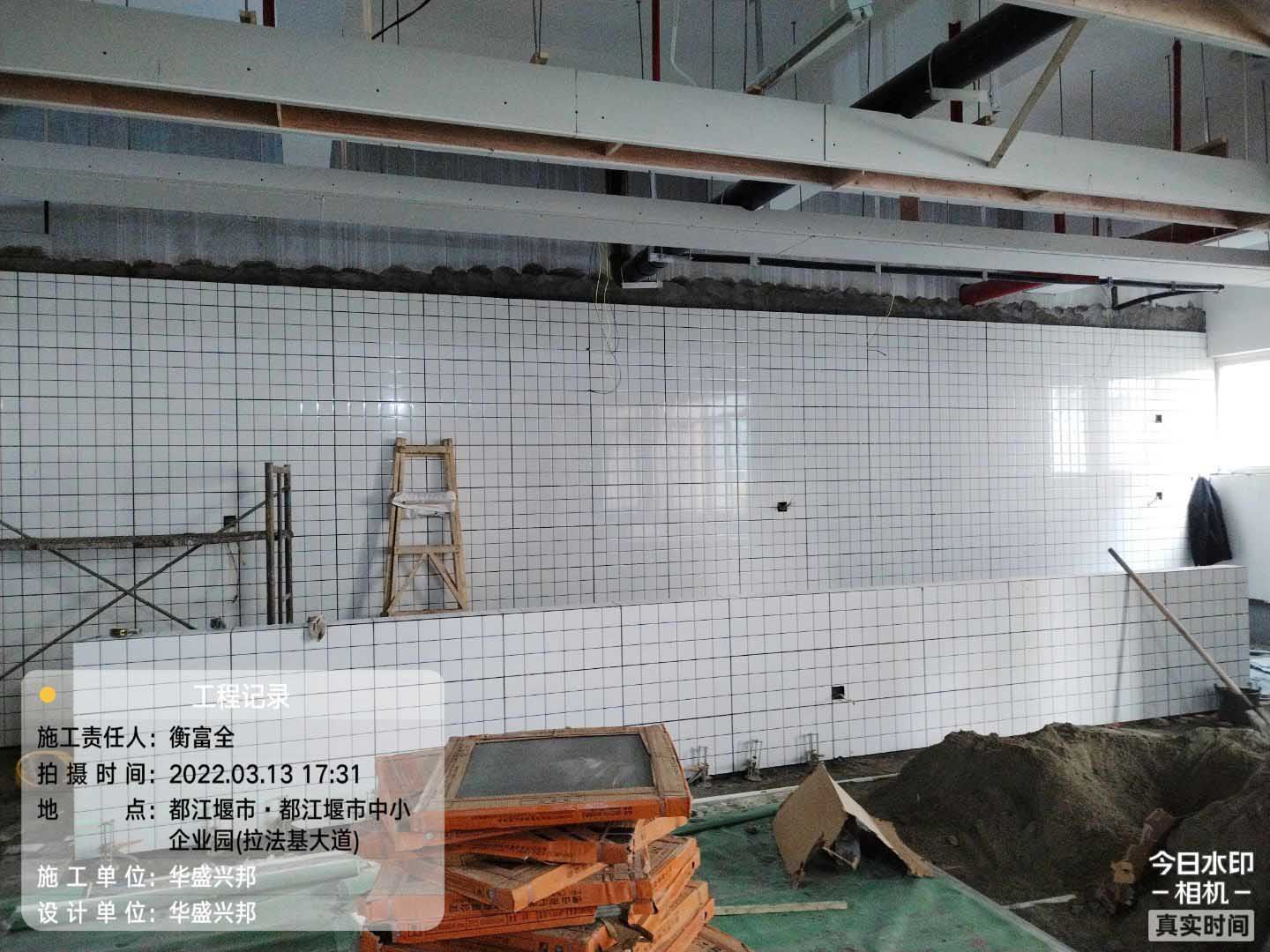 今日施工內容 1,電工收尾 2,漆工嵌縫 3,鋪貼墻地磚 4,衛生間避水實驗