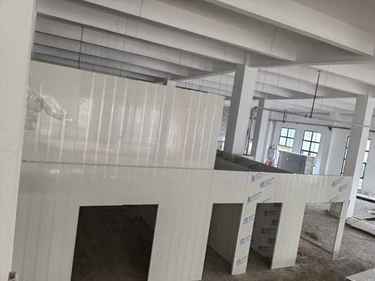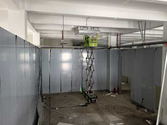 ①新風風管安裝第50天,完成進度85% ②彩鋼板增項,施工第2天,完成進度80% ③水電工進場施工第51天,成完進度85% ④乳膠漆前期處理施工第3天,完成進度100%