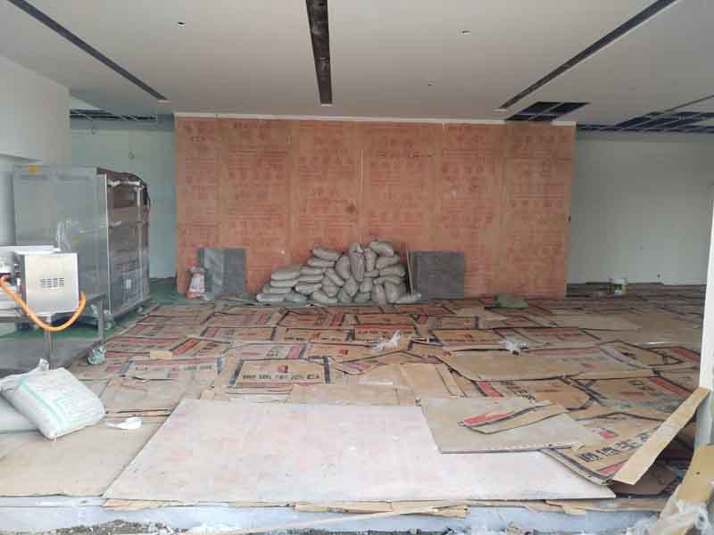 今日施工內(nèi)容 1.臨時(shí)用水,用電架設(shè) 2.木工隔墻放線(xiàn) 3.木條防火涂料滾涂 4.施工場(chǎng)地整理
